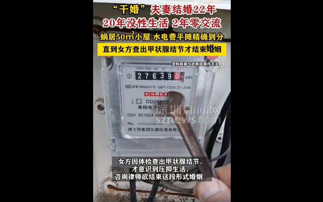 一对夫妻结婚22年,20年无性生活、2年零交流,同住50平小屋,水电费分摊精确到