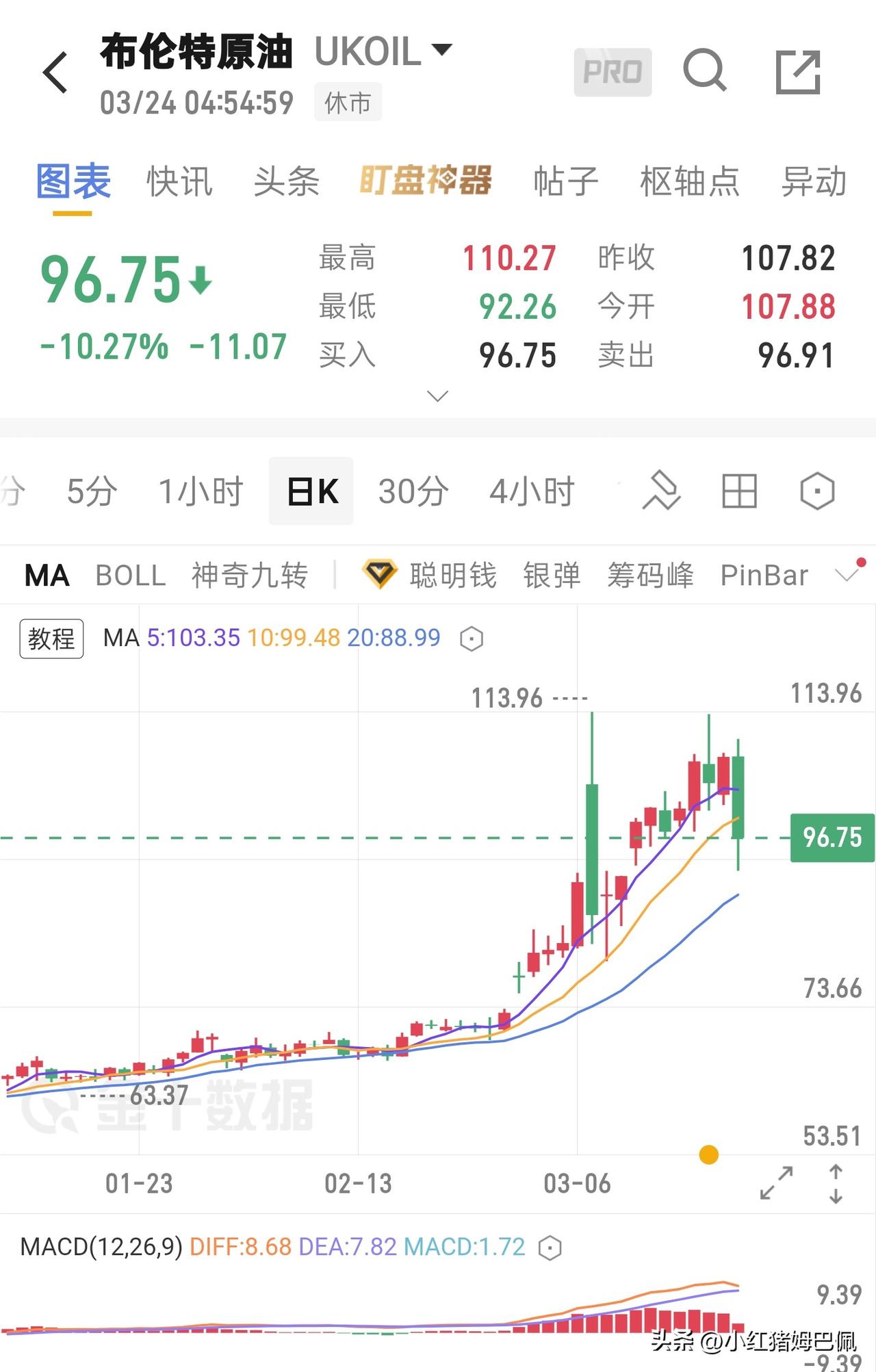 今天A股反弹是毫无疑问的,那么反弹幅度会有多大呢? 昨晚随着特朗普释放出谈判信号,美债收益率及油价应声回落。美股开盘大涨,但到了收盘一部分涨幅回吐。 从本轮恐慌最大的驱动因子高油价来看,虽然价格已经跌回到了上周初,但这并不意味着资产价格能收回全部失地。 预估今天A股反弹,并能够收回昨天1/2左右的失地(深证及创业板可能接近2/3),因为虽然油价跌了回来,但是市场波动率高的时候一部分避险资金会选择回避,且当下市场情绪已低于冲突初期油价95美元时,所以今天反弹的强度和速度会低于调整时。