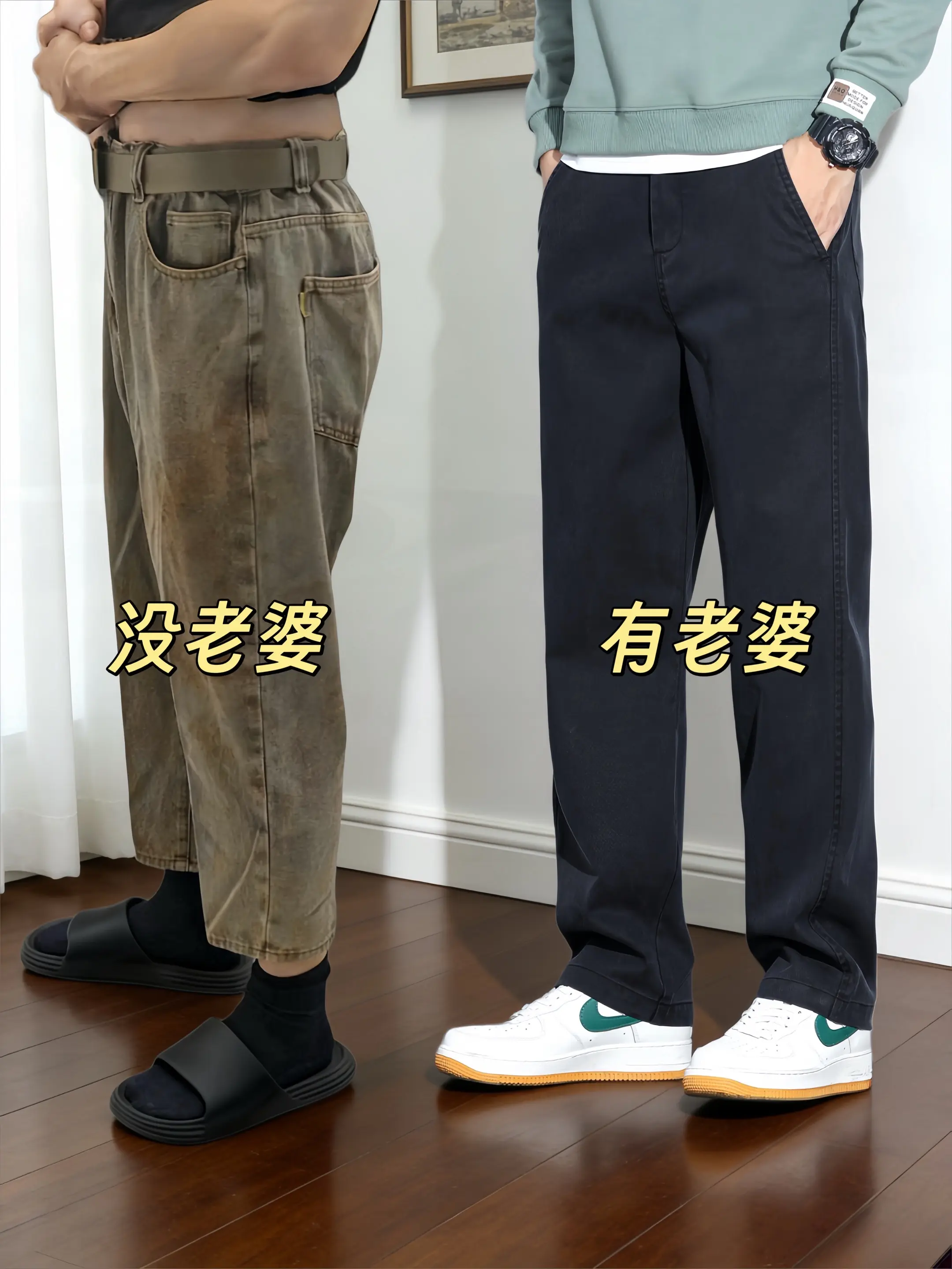 牛仔裤搭配 男生的裤子应该怎么选 宽松直筒牛仔裤 牛仔裤穿搭 给老公买的裤子