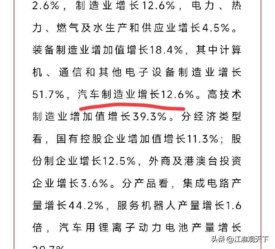 安徽押宝汽车产业成功,安徽省抓住了重要的风口产业 中东那边,美国以色列和伊朗打的昏天黑地,霍尔姆斯海峡一封锁,全球油价上涨,受国际形势影响,中国的汽油,柴油价格从3月23号24时起,每吨也分别上涨1160元,1115元。 安徽省是中国汽车产量第一省,去年安徽汽车产量超368万辆,排名全国各省市第一,其中新能源汽车产量接近180万辆,也是全国第一。 安徽产的汽车出口年超100万辆,全国第一。 2026年1-2月,安徽统计部门给出数据,汽车制造业增长12.6%。 安徽押宝汽车产业成功,在严峻的国际形势变化下,汽油,柴油价格齐上涨,而充电汽车的电费,保持稳定,还有优惠价,更多的人在选择新能源汽车,作为安徽省的重要支柱产业,汽车产业发展推动了安徽经济社会高质量发展。安徽城市经济 安徽经济开门红 安徽产业分析 安徽造车 安徽造车新势力