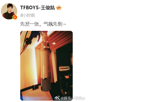 王俊凯晒录音照 晒录音照:“先发一张,气氛先到~ ”期待小凯新作!!