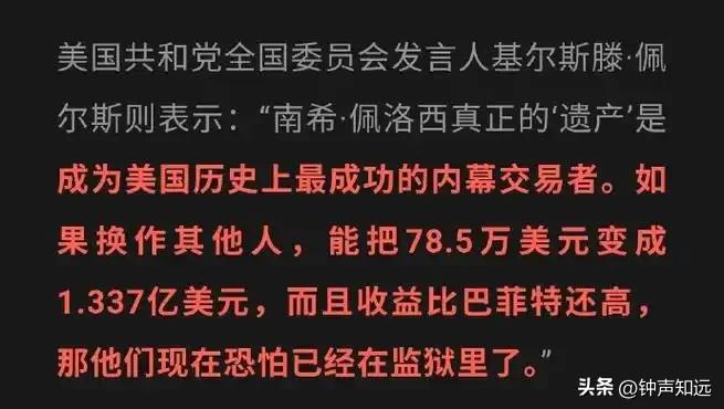 白宫股神和国会山股神谁才是真股神? 国会山股神洛佩希,国会里啥法案要过、哪个领域要出利好,她门儿清,转头就让老公精准买股,芯片法案、科技行业的红利,她家全赶上了,赚的钱比专业投资巴菲特还多。 白宫股神更牛,和伊朗到底是打是和都让股神大起大落。 美国嘴上说反内幕交易,可对这些政客根本不管,俩人被质疑了要么嘴硬说自己没毛病,要么互相骂对方。这就是一群美国政客把公权力变成自己的摇钱树,吃相不管多难看自己和选民感觉良好就行。