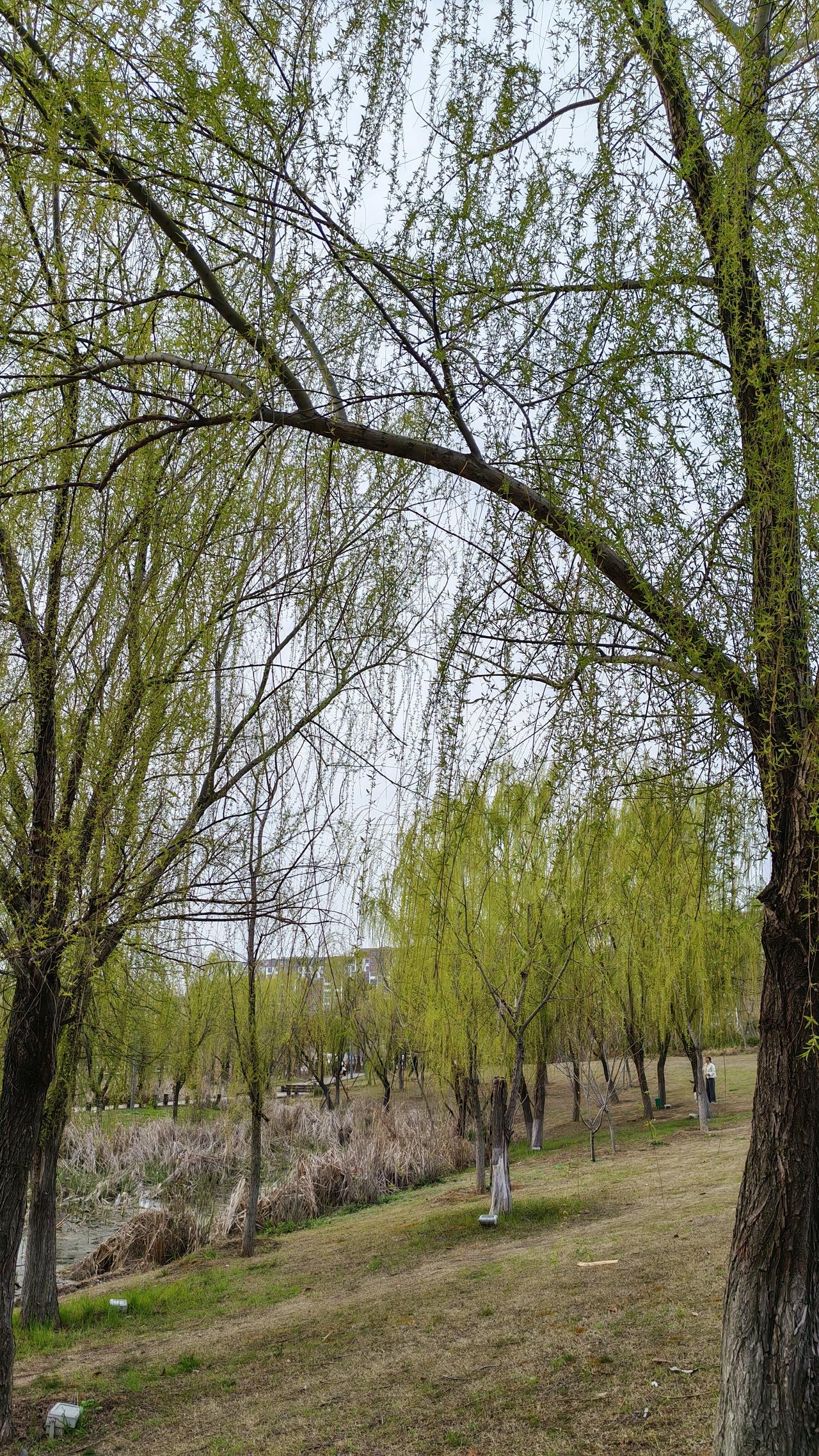 湖边的垂柳,垂下了柔软的枝条,像是绿色的丝带在风中飘舞。湖水清澈见底,鱼儿在水中