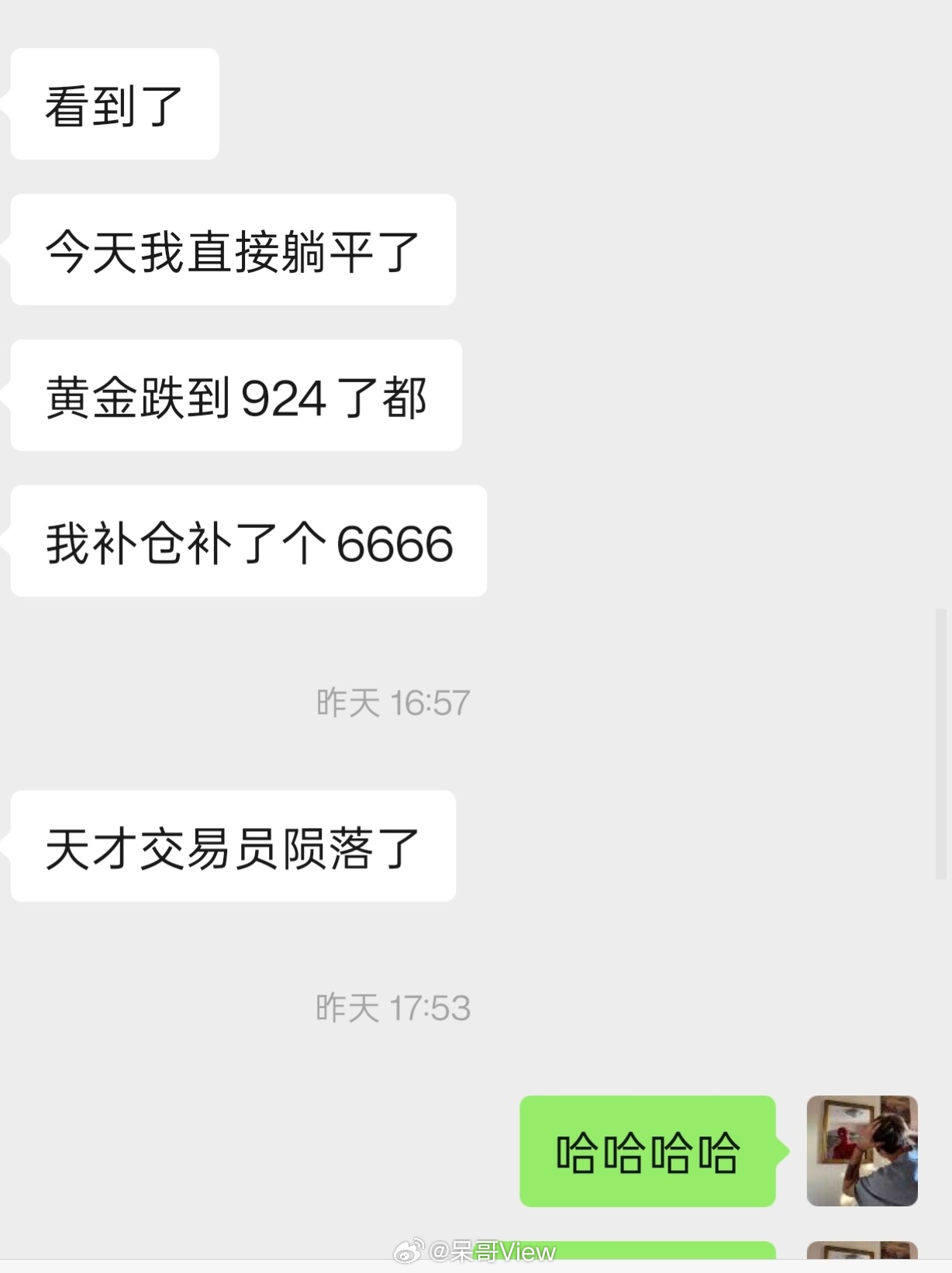 金价大跌没人扫货了越是下跌越要狠狠地吃进,越跌越买。我朋友扫货还真抄底成功了,今