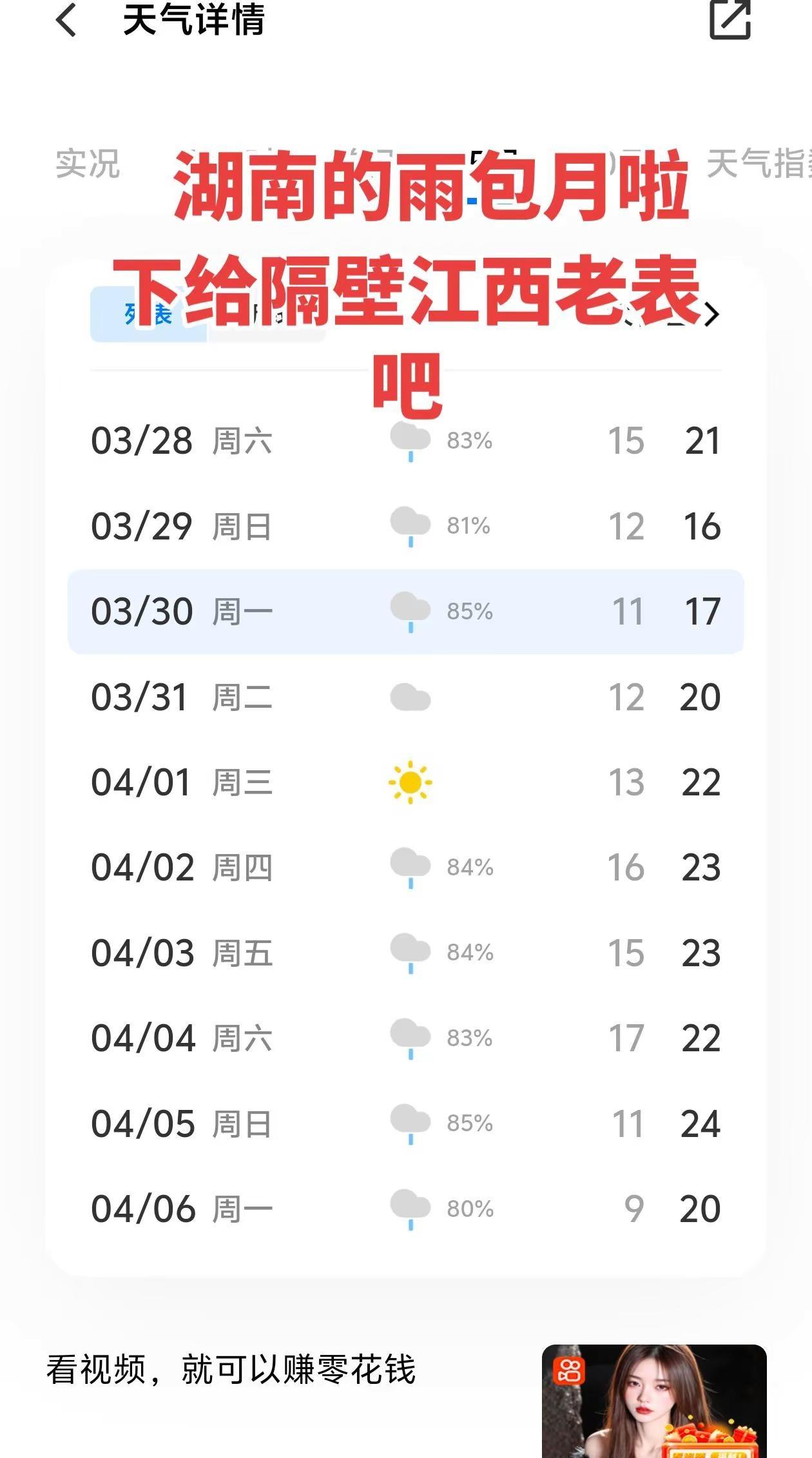 湖南的雨要下到下个月去啦,别下啦,下到隔壁江西老表那去吧