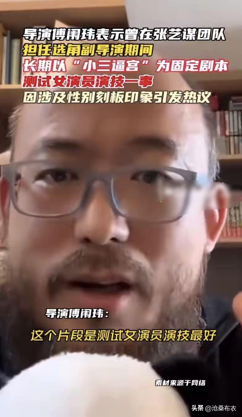 74岁张艺谋被曝新演员试戏太苛刻!3月16日,曾跟随张艺谋多年的副导演傅闱玮曝料,他说每个新演员都要经过试戏这一关,年轻女演员的试戏内容长期是当“小三逼宫”,女演员试戏都要当“小三”。 傅闱玮有点不底道,不在张艺谋手下干了,就说人家坏话,既然你觉得试戏不对,你当初为何不讲。 个人认为演员试戏正常,就像你去工厂面试一样,人家工厂也要考试,这无可厚非。 有网友说张艺谋那试戏手段不道德,有精神操控和人格侮辱,这评论就有点过头了,只能说有点苛刻罢了,但挑选演员不苟刻,何能挑出会演戏的演员呢。 人者见仁,智者见智。