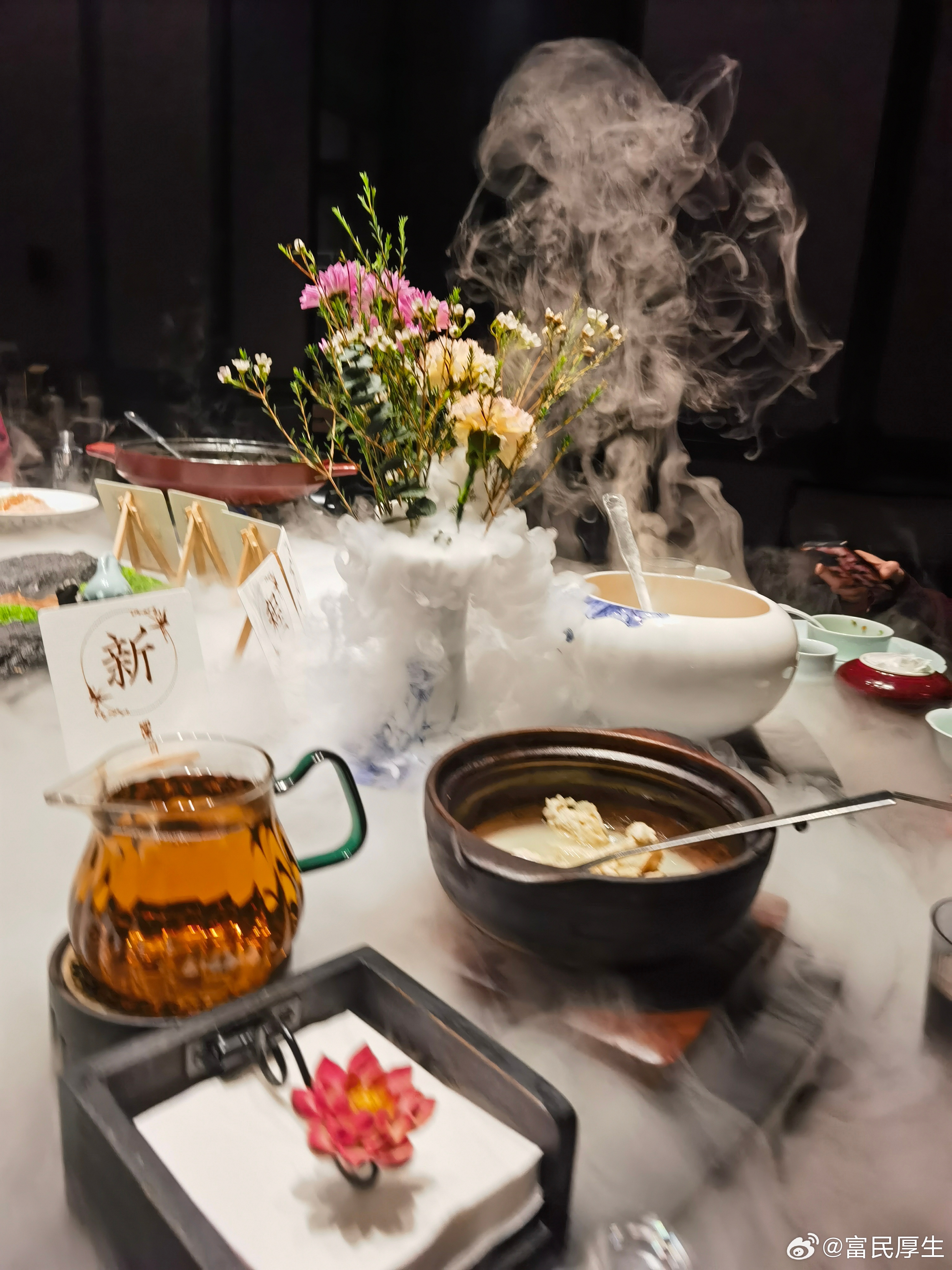 登楼入席,铜锅沸雪,炭火映壁。侍者呈左公鸡,焦黄酥脆间隐见当年收复新疆之豪气;五色鱼者,红椒青蒜佐以紫苏,恰似湘军旗帜五色纷呈。篱蒿清盘碧如玉簪,脆嫩处犹带洞庭烟水。酒过三巡,张兄忽起箸击盏,高诵“倚天照海花无数”,众皆和之,声震屋瓦。