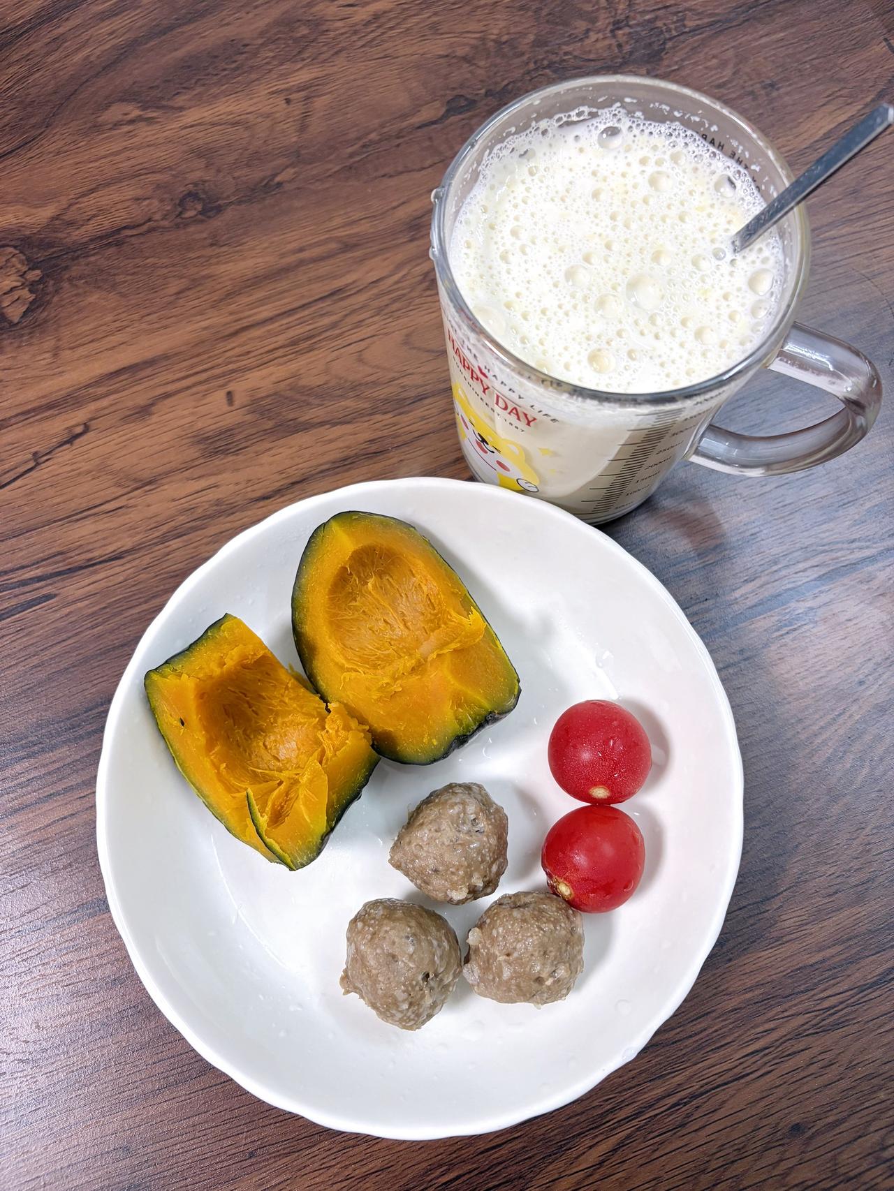 自律减脂健康餐,目标95斤,加油 今日减脂早餐:牛肉丸+南瓜+番茄+豆浆