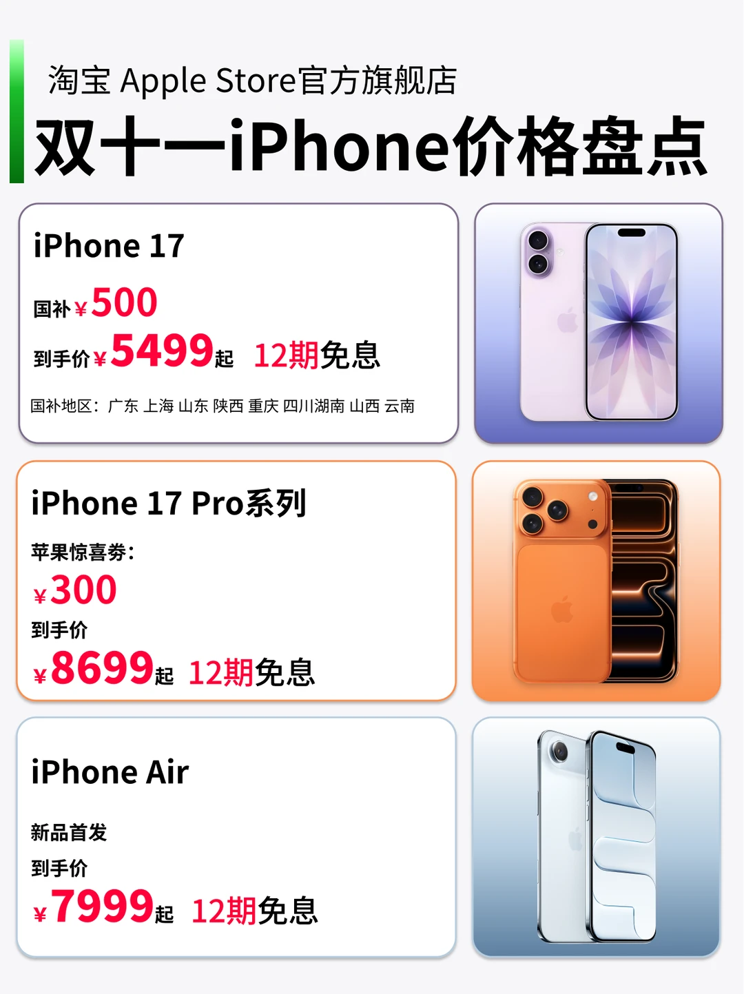因为淘宝这次针对iPhone 17 Pro系列,直接给了300元的惊喜券!还有12期免息。直接让你比其他平台(尤其是DY,Pro系列没优惠)多省了一大笔!