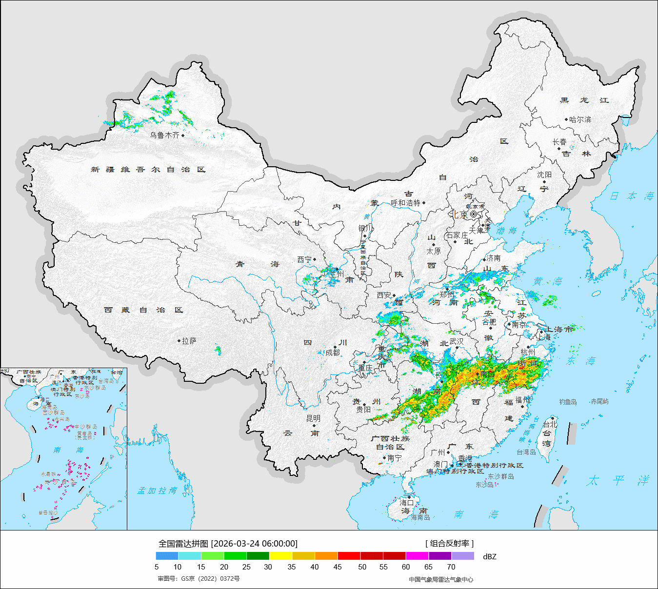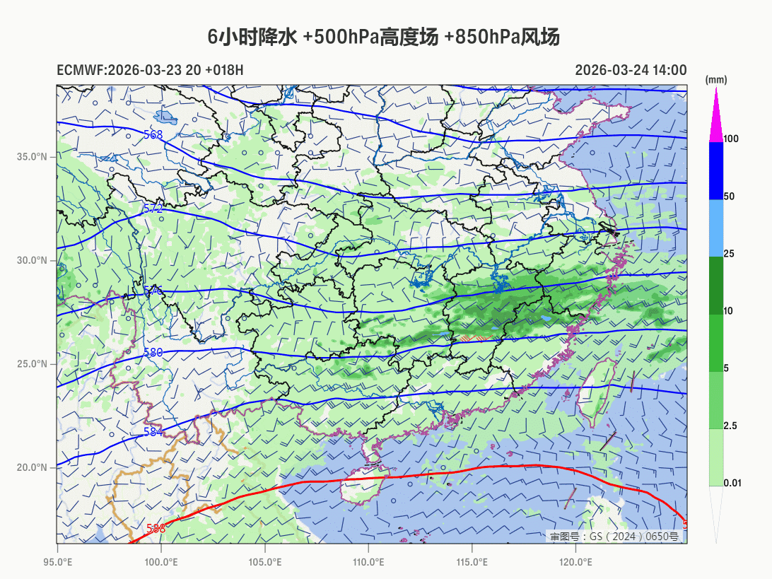 【降水和对流】昨天到今晨,青藏高原东部继续出现降雪,贵州到江南等地的降雨增强,江西成为降雨核心区,包揽了降水榜前十,抚州、鹰潭、上饶下属的站点出现暴雨。金溪78.3毫米排名第一。抚州(临川)72.8毫米、上饶68.3毫米、鹰潭60.3毫米,也名列前茅,临川也是今年首次出现暴雨。