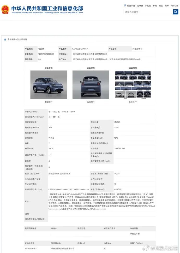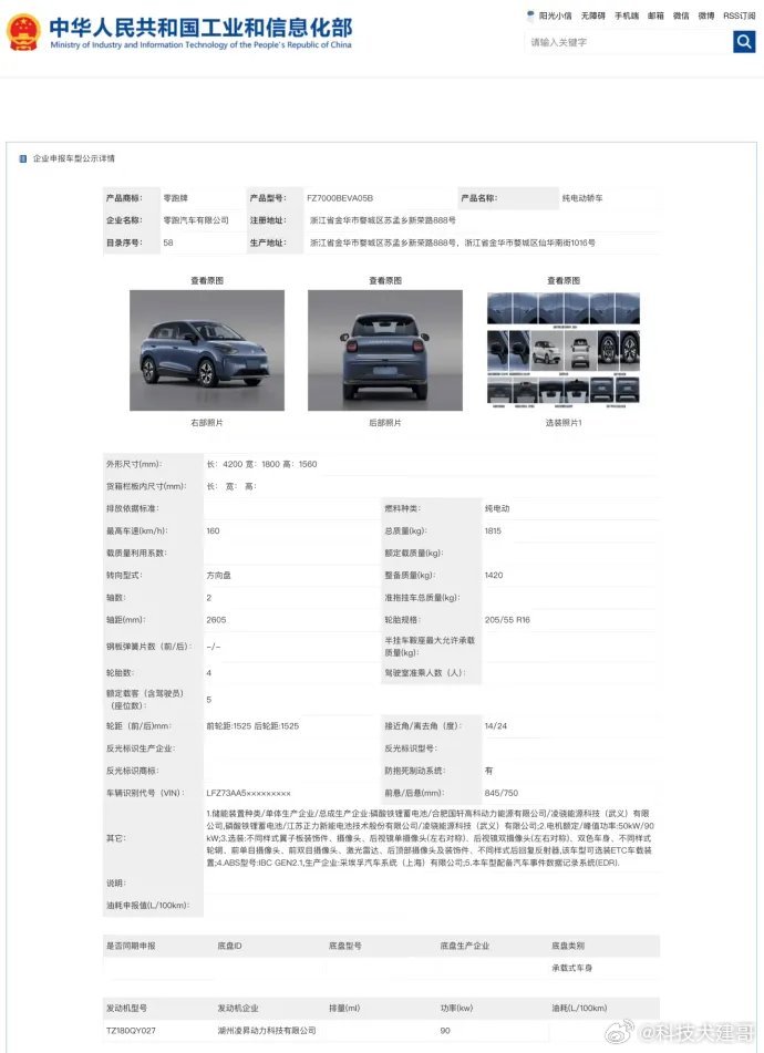 零跑A05这辆纯电小车在工信部新车公示里亮相了!尺寸不大,车长4米2,轴距2米6出头,是个标准的城市代步小车,预计会跟同级竞品直接掰手腕。