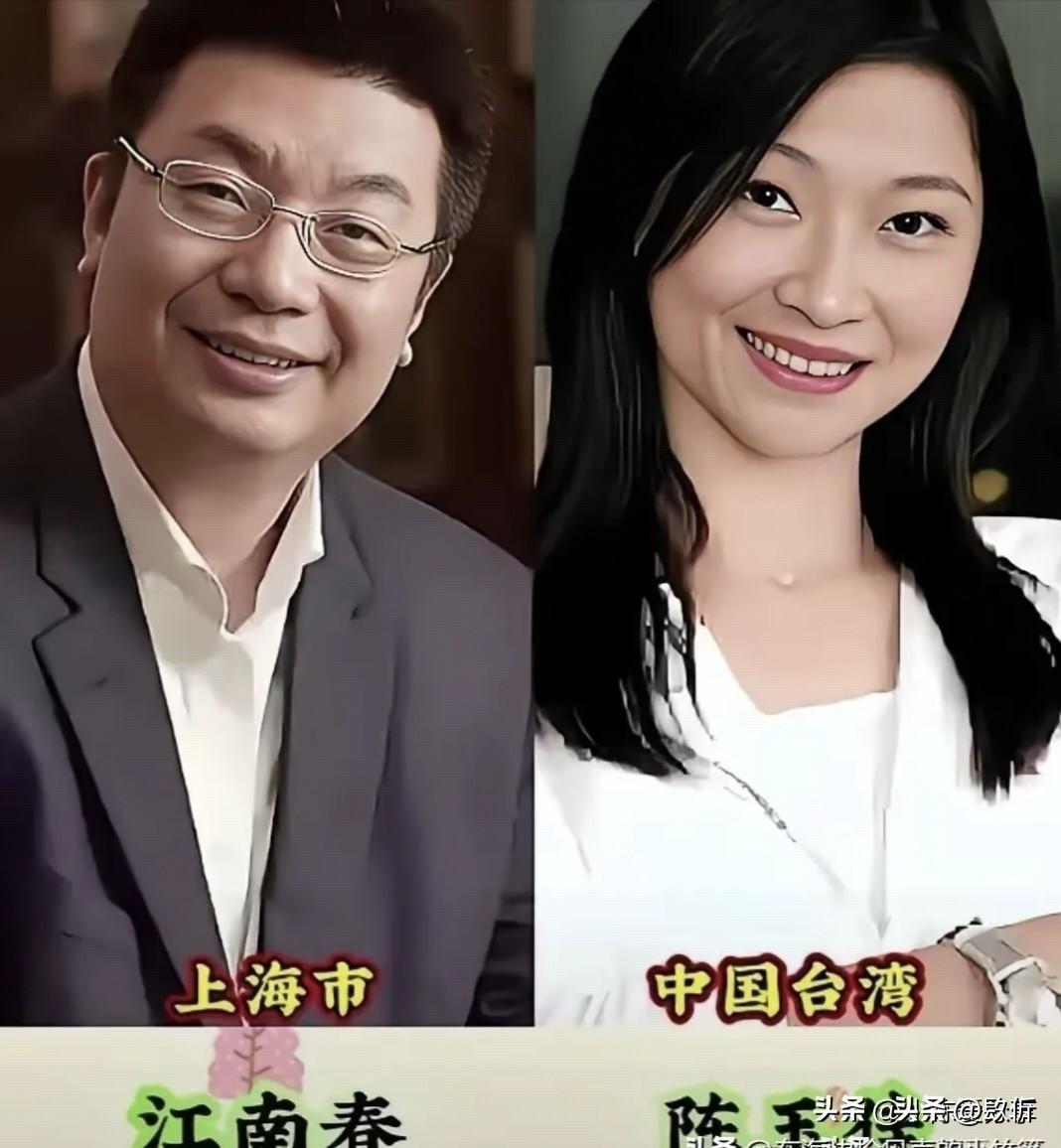 “海峡两岸,姻缘一线牵”!看看都是哪些明星夫妇吧? 你看看这帮明星夫妇,秦昊和伊能静、钟小江和刘若英、张敏和刘永辉、张伦硕和钟丽缇、李荣浩和杨丞琳、江南春和陈玉佳、陈晓和陈妍希、黄晓明和杨颖(虽然离了)、蔡少芬和张晋,这不就是“两岸一家亲,通婚亲上亲”了吗!