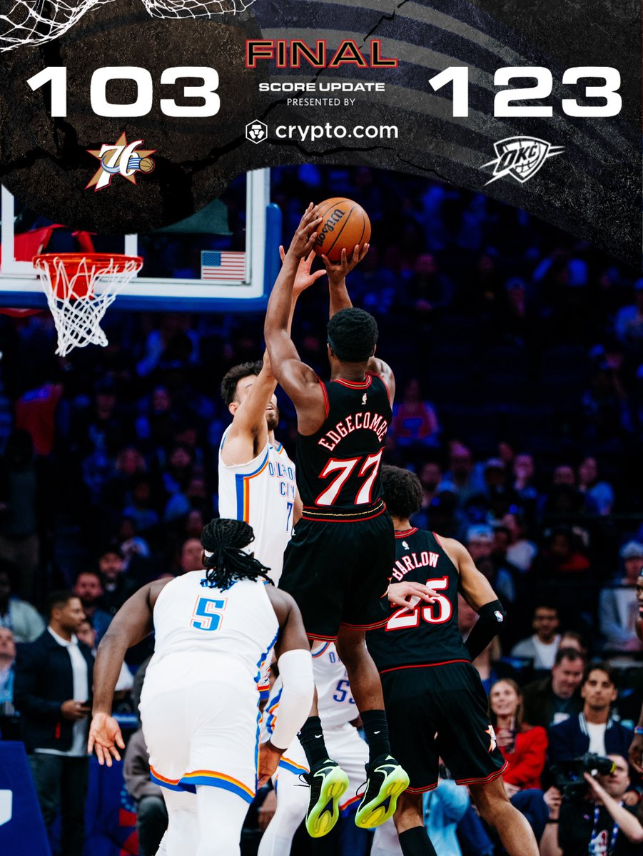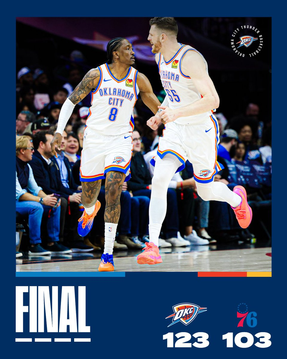 雷霆战胜76人 雷霆123-103费城76人,豪取12连胜!杰伦-威廉姆斯复出18分4篮板6助攻,,亚历山大22分5篮板5助攻延续20+纪录,76人探花秀埃奇库姆35分6篮板4助攻