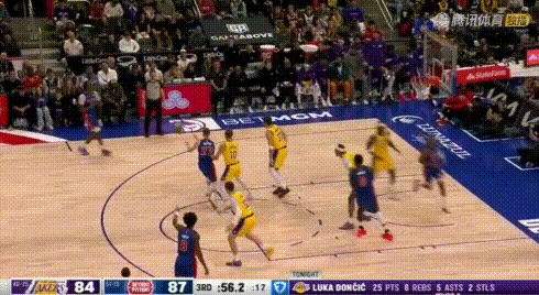 多次不防?东契奇:但我真能得分啊! 可能是受伤影响,今天东契奇完全放弃防守,可他是真能得分。 看3节末这2连续攻防回合: 先是造犯规未吹不回防快攻;漏3分后回敬; 首节17分(11中5),3节又单节11分(9中5)。即使不防他也能用进攻弥补! 图3:首节节间受伤离场