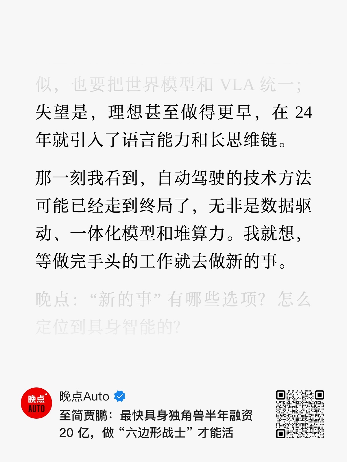 大佬离开智驾进入具身的理由是那么的朴实无华: