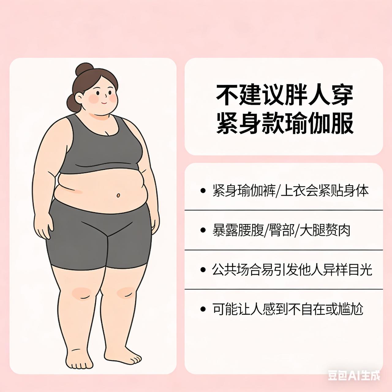 胖人真的别轻易碰瑜伽裤。 胖人穿瑜伽裤,不仅暴露身材缺点,还会让整个人看起来更臃