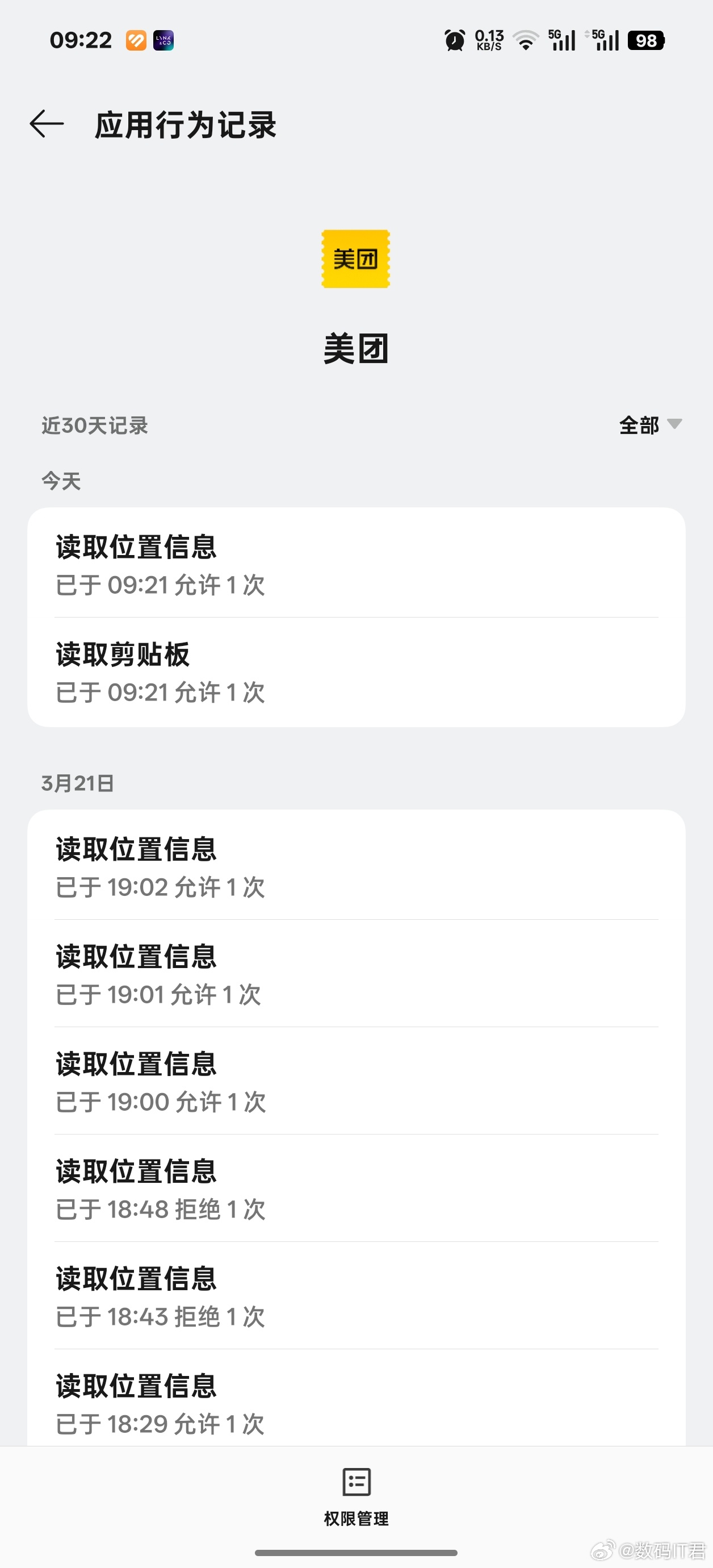 美团删照片典型的权限过度,相册、联系人、剪切板,有些App根本用不着这些,直接锁死就完事了。