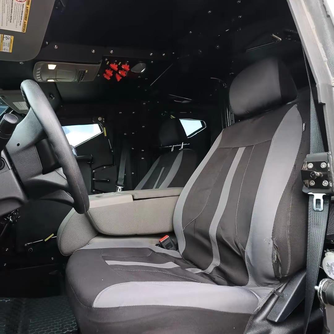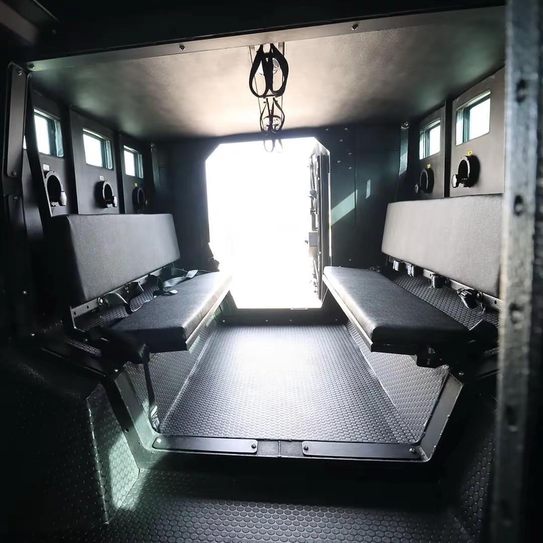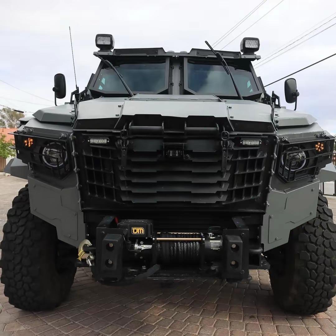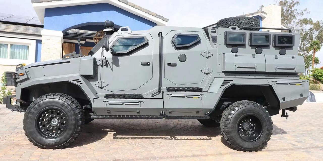 这台 2024 款 BATT UMG 由 The Armor Group(TAG)面向民用市场推出,2025 年由现任车主自拉斯维加斯 GOAT Tactical Vehicles 购入。车辆基于福特 F-600 Super Duty 重型底盘打造,搭载 6.7 升 Power Stroke 涡轮增压柴油 V8 发动机,匹配 10 挡自动变速箱与双速分动箱,配合限滑后差速器,整车最大允许总质量约 11.8 吨,是一台兼顾公路与复杂地形通过能力的重型特种平台。在核心配置上,整车车身与车窗均具备弹道级防护能力,前部绞盘牵引力约 7.7 吨,配备防爆轮胎与 20 英寸轮圈,同时提供车顶探照灯、红蓝警示灯、前后影像系统以及外部储物舱等实用装备。座舱采用对坐式后排布局,可容纳多名乘员,辅以车顶舱口、九处装甲射击孔、独立空调与扩音系统,使其在功能性与战术属性之间取得平衡。放在当下电动化与智能化主导的汽车语境中,这类装甲平台显得格外“异类”。它不追求效率与精致,而是以极端安全与机械可靠性为核心,呈现出一种近乎工业化本能的力量感。装甲车 汽车改装 福特 汽车知识分享
