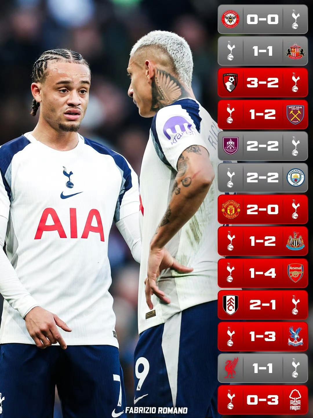 【热刺考虑紧急换帅】据《每日电讯报》,热刺在遭遇英超13轮不胜、仅领先降级区1分