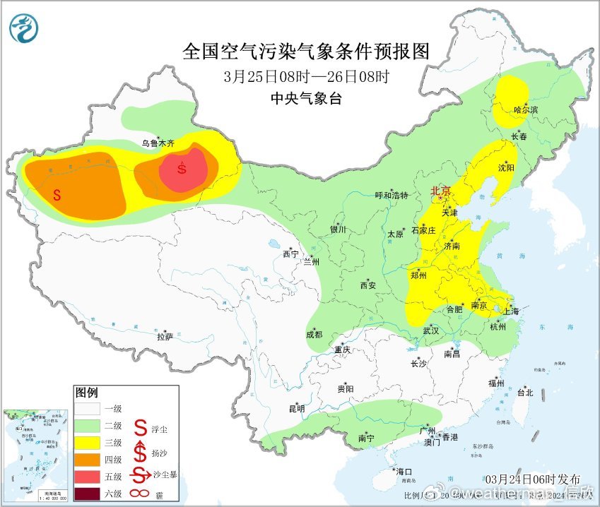此外,冷空气的活动,也可能使得25日至26日,新疆东部和南部、内蒙古西部、甘肃西部等地的部分地区有扬沙或浮尘天气,新疆东部局地有沙尘暴。