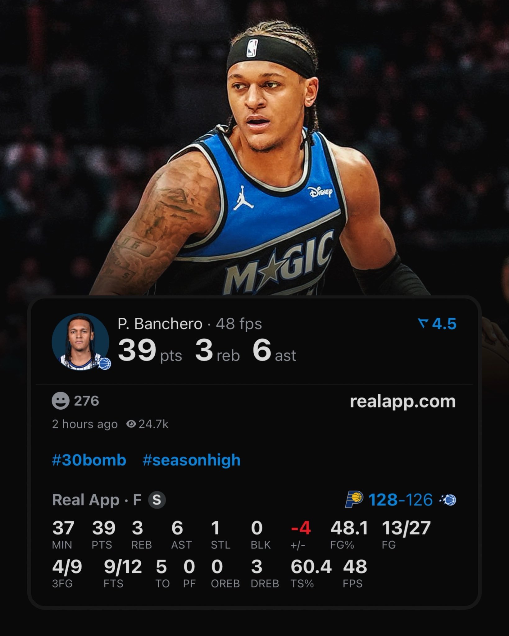 魔术遭遇5连败,今天班凯罗空砍赛季最高的39分。NBA步行者vs魔术