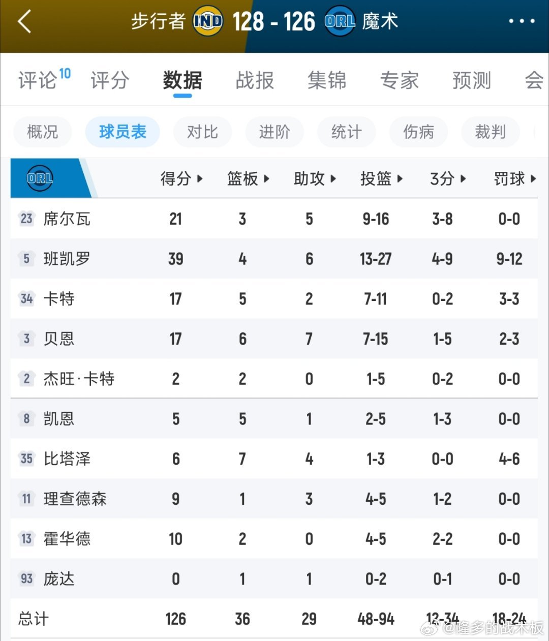 西亚卡姆制胜封盖,步行者客场128-126战胜魔术,结束16连败!后天上午7点,