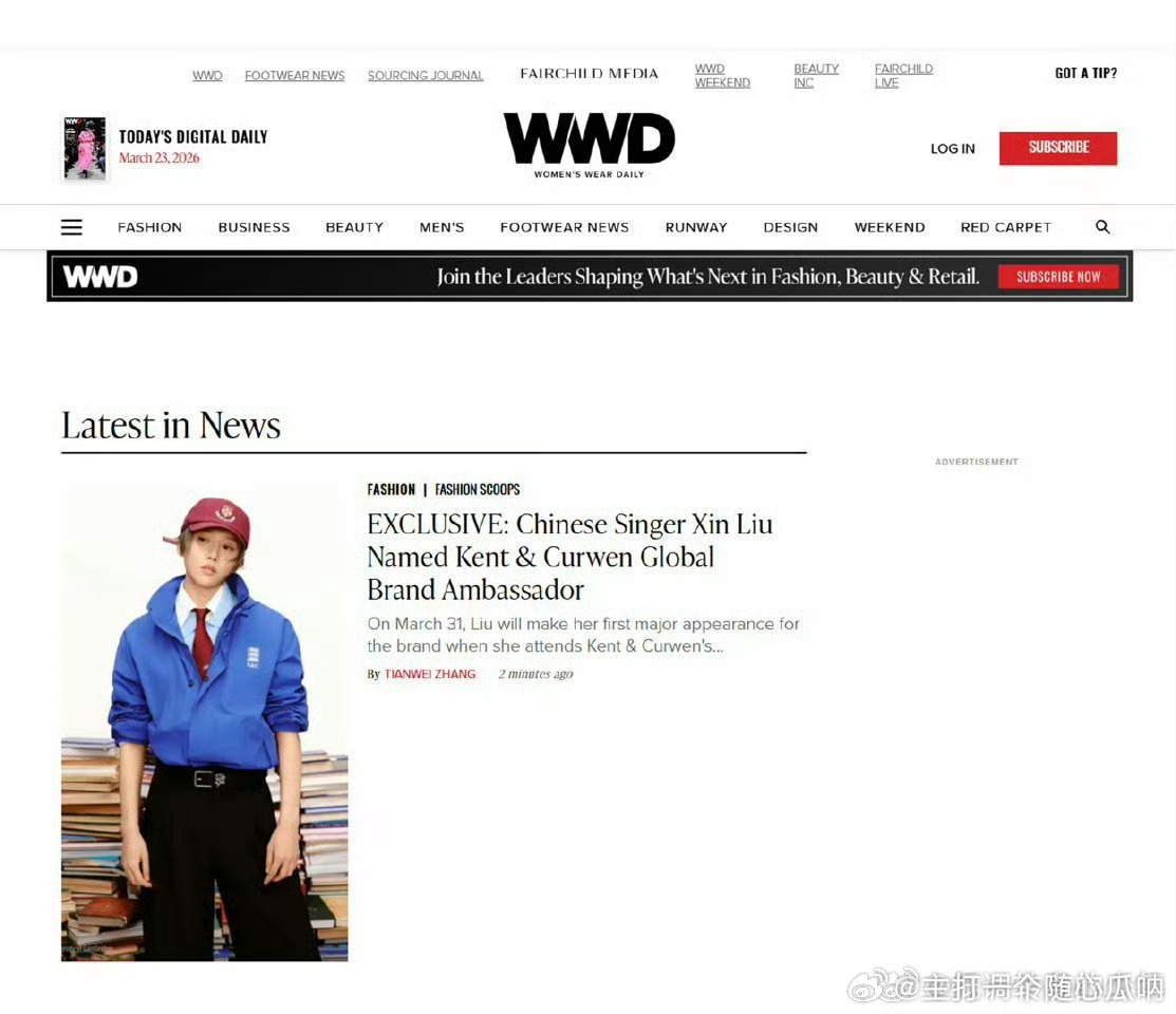 恭喜刘雨昕空降肯迪文首位且唯一全球品牌大使!Global Brand Ambas