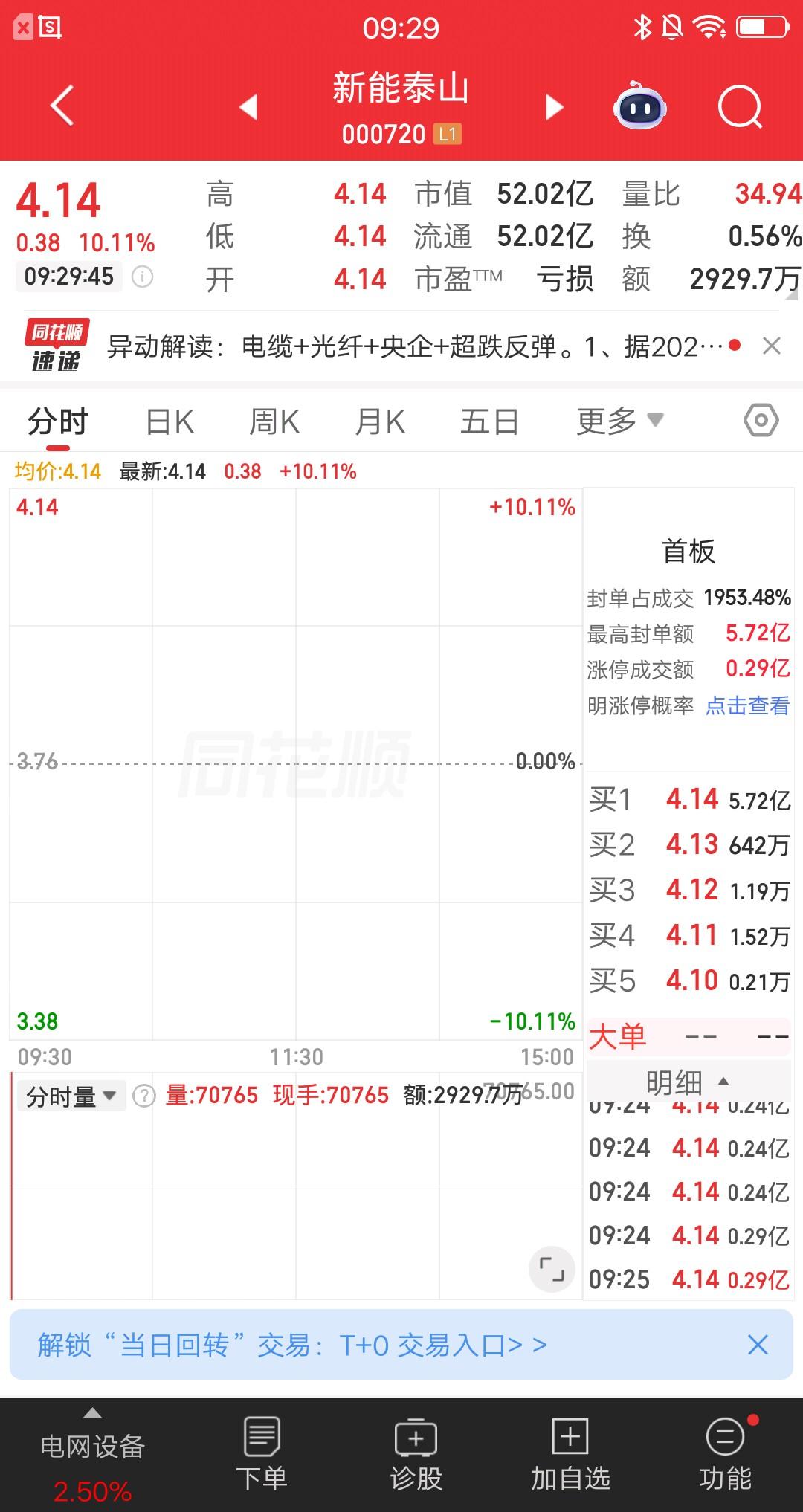 A股今天竞价最强的3只票,短线资金在竞价阶段,就开始投入战斗了。因为竞价可以看出当天的强势方向,一字涨停往往是强势的表现。 海天股份,竞价一字涨停,竞价成交1418.8万,封板金额2.47亿。炒作逻辑,通威合作+光伏银浆+环保水务。 中利集团,竞价一字涨停,竞价成交2891.6万,封板金额7.57亿,炒作逻辑,钙钛矿电池+厦门国资+光伏储能。 新能泰山,竞价一字涨停板,竞价成交2929.7万,封板金额5.72亿。炒作逻辑,电缆+光纤+央企。 当然,竞价强并不代表全天都强,只是一个参考。
