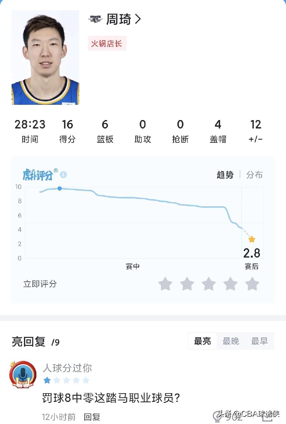 别再给周琦“找补”了!8中0还不够丢人?非要比谁更烂? 周琦单场罚球8中0,离谱吧? 结果评论区画风清奇:“这还不是最差的,当年有个外援10中0呢!” 言下之意——周琦还行,有人比他更拉胯。 我就纳闷了:什么时候“比烂”也成了一种洗白方式? 8中0和10中0,有本质区别吗?不都是站上罚球线,把篮筐砸得叮当响? 职业球员,罚球是最基本的送分题。你平时练什么了?比赛里连罚球都稳不住,还谈什么对抗、谈什么压力? 更可笑的是,居然有人翻出十几年前的外援数据,就为了证明“周琦不是最差的”。 合着罚球这门课,我们比的是谁更烂?比的是谁没垫底? 醒醒吧,职业篮球不是“比烂大赛”。你罚球8中0,丢人就是丢人,跟有没有人10中0没关系。 周琦也好,其他球员也罢,这种表现就该被批评,就该反思自己基本功到底练哪去了。 别再用“还有人更差”来给任何人找补了。 真要这么比,那CBA干脆设个“罚球最差奖”好了——看谁先把篮筐砸歪。