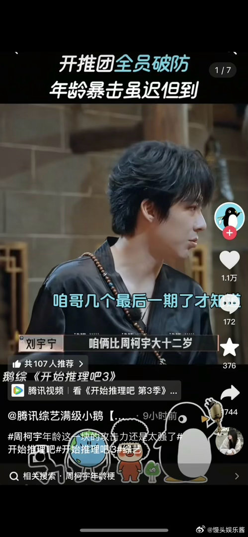 刘宇宁综艺里戏剧化地表达了自己得知周柯宇是02的震惊!然后强调了好几次大了一轮1