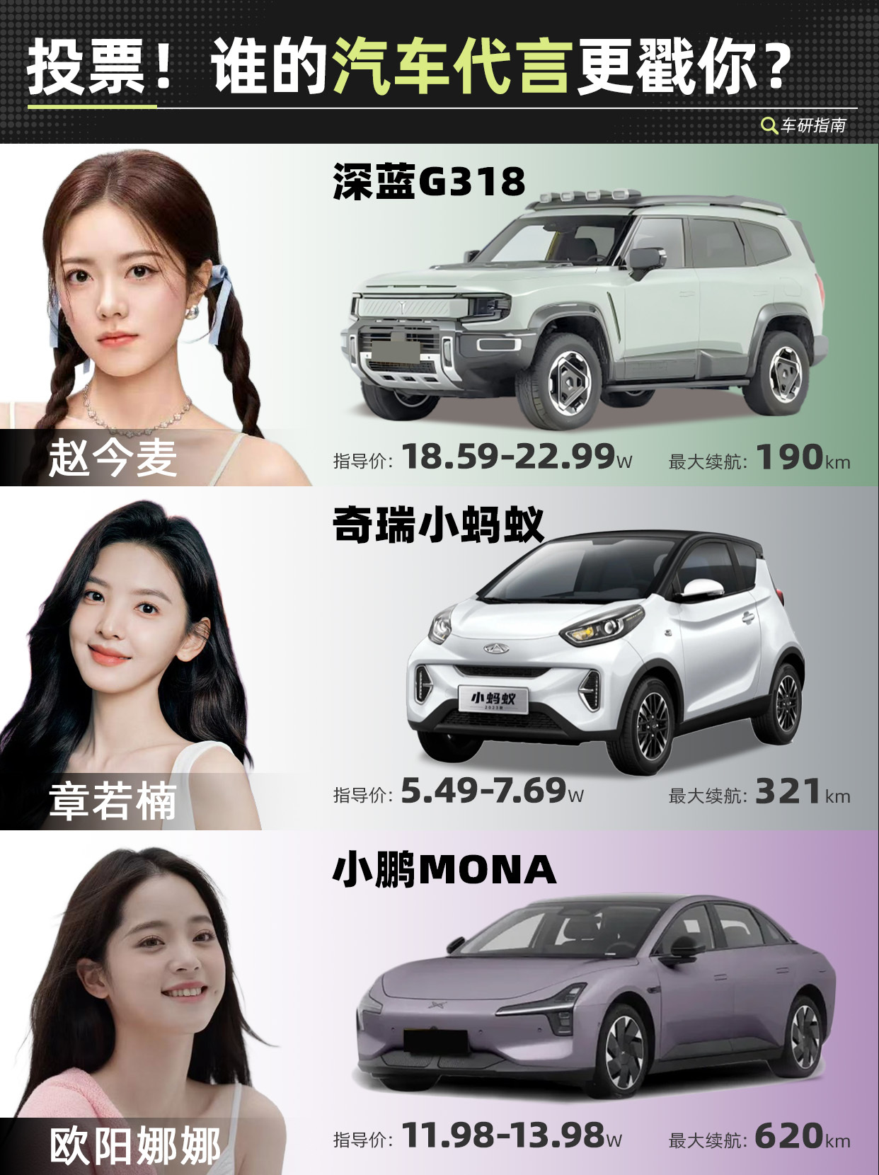 大家觉得那个车企选的代言人最贴合?欢迎补充讨论~