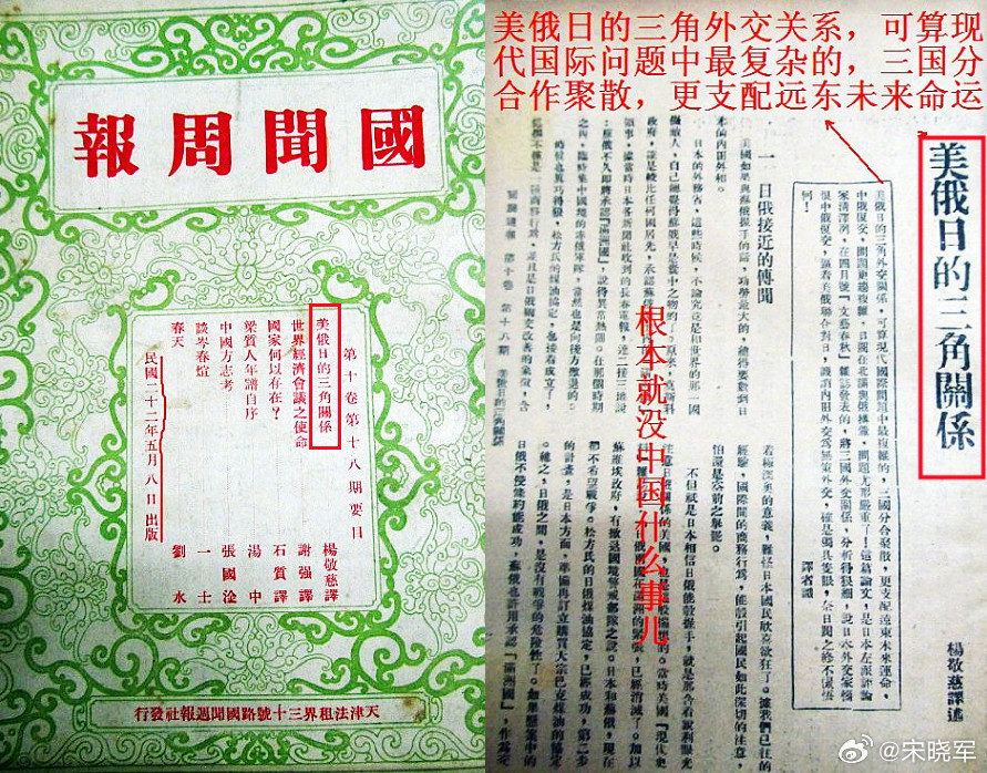 1933年,在中国媒体上只能看到“美俄日三角关系”的分析;图2:同年,蒋与其中的日本还签署《塘沽协定》,近乎将整个东北和大部分华北拱手让给日本;图3:如今三角关系中的日本换成了中国,且变量潜力难以预测;图4:而如今最不愿意看到中国统一台湾的日本,开始凑上去死贴美国了。