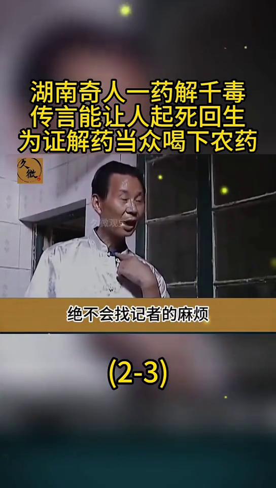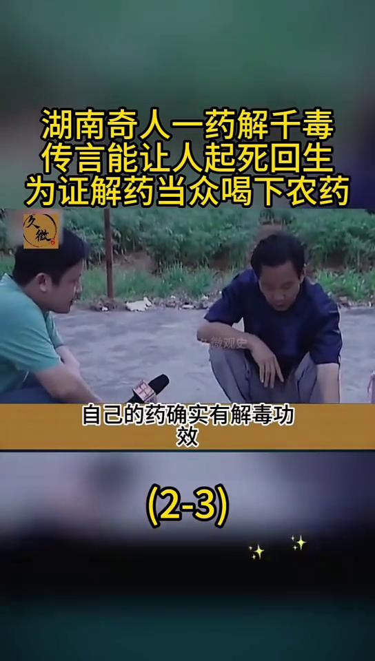 湖南奇人一药解千毒,医院都他一碗药。 王二明养生茶。 传言能让人起死回生,为证解药当众喝下农药。湖南奇人"解毒王"靠着一包神奇药粉走天下,不管是身中蛇毒还是喝下农药一碗汤药后就能药到毒除,甚至有传言他妙手回春还能让人"起死回生"。不信邪的记者上门求证却意外见证了神奇的一幕。这位"解毒王"究竟是"再世神医"还是大胆的骗子?在他家中记者又见到了怎样神奇的一幕?今天就让我们一起来了解这位湖南奇人"解毒王"。 在一个寂静的深夜,一个小偷打扮的人悄悄溜进了湖南湘潭茶恩镇的某户人家。奇怪的是他明明翻出了大量的现金却看都不看,拿着一本古朴的旧书欢天喜地地离开了。第二天这件事在当地引起了不小的轰动,就连当地记者都被吸引过来,想看看是什么样的旧书竟然比现金更能吸引小偷。 丢书的人名叫王二明,当记者来到他家时顿时吃了一惊,发现他家的墙壁上到处挂着赞美神医的锦旗。记者还以为王二明是一名医生,结果王二明却说自己之前只是一个小学老师。作为老师的他之所以能获得"神医"的美誉,主要是因为他有一个"绝活",能用一包药粉解百毒。不管是被毒蛇咬伤还是服下农药奄奄一息,只要趁着还没咽气喝下他用药粉冲的汤剂,立刻就能重获新生般恢复健康。 在茶恩镇方圆百里内,王二明和他的神奇药粉堪称"无人不知,无人不晓",当地人都称呼他是"解毒王"。20年来他靠着神奇的药粉在当地救活了不少人,那一面面锦旗就是最好的证明。甚至有不少人还觉得王二明妙手回春能让人起死回生,原因就是之前有一个农妇因为跟家人闹矛盾,一时想不开喝了农药过了很久才被家人发现,送去医院后医生都觉得没救了。 正当一家人愁云惨淡地准备丧事时,邻居提醒说人还没咽气不如请王二明来试试。果然王二明被请来后只用了一碗汤药,原本都要办丧事的农妇竟然又恢复了神智,如今还好好地活着。那个小偷就是知道了这一点这才要铤而走险,偷偷潜入王家无视了成堆的现金,反而把一本记着很多药方的古书拿走了。听了王二明的话记者满脸写着不信,这世上哪有这么神奇的解毒药竟然能轻松化解蛇毒和农药。 见记者不相信王二明也不多解释,直接带着记者去了镇上的农药站一开口就要买药效最毒的农药。老板在将农药拿给他们时还反复地叮嘱,在使用时至少兑进去5斤清水,而且绝对不能直接用手接触药水。为了防止王二明趁机做手脚农药就由记者拿着。 随后王二明又带着记者往菜市场方向走,买了两只活蹦乱跳的母鸡。卖鸡的老板娘一眼就认出了王二明,并告诉记者只要王二明来买鸡,就说明他要给人做实验了。很多人闻讯赶来围观王二明做实验,只见王二明用试管取出一剂农药将其输进其中一只母鸡嘴里。 烈性极强的农药肉眼可见的开始起效,很快刚刚还活蹦乱跳的母鸡就歪倒在地上没了气息。王二明又抓住另一只母鸡像刚才一样将农药注射到它口中,这只母鸡也很快就虚弱下去眼看就要不行了。就在这时记者看到王二明拿出了一包像泥土一样的药粉,用热水将其冲开再用注射器将其注射到第二只母鸡口中。 接下来就是见证奇迹的时刻。湖南祁人被称解毒王,传言可用以药解铅毒,唯燕真假。老王当众将剧毒农药灌进母鸡口中,接着连灌几次解药,鸡却没有丝毫好转。难道老王果然是个江湖骗子?记者心中百转千回,闪过了无数念头。 但没想到下一秒奇迹发生了,母鸡突然扭动几下,嘴里顿时吐出一滩白色液体,紧接着便张开了嘴,扬起了脖子,似乎已经从鬼门关回来了。有人拿脚去踢它,母鸡也有了回应,似乎他身上的毒真的得到了化解。如今正在慢慢焕发生机,记者还是感觉难以置信,一团黑乎乎的粉末化成水,真的就能成为解毒灵药吗?这鸡该不会是回光返照吧? 为了以防万一,记者打算第二天再来看看鸡的情况。趁着老王不注意,他还悄悄用墨水在鸡翅膀底下做了记号,以防老王晚上掉包。第二天记者早早上门,结果就被彻底折服了。昨天的那只母鸡如今已经活蹦乱跳,就像从未中过毒一样,抓都抓不住。记者掀开翅膀验证,发现老王并未掉包,这就是昨天那只母鸡。 为了进一步证实自己的药确实有解毒功效,老王又找来了一只鸽子,将昨天的农药和解毒药混合在一起,给鸽子灌了下去。结果鸽子就像是什么事都没发生过一样,根本没有丝毫中毒的迹象。 到了此时,记者也不得不承认,老王的解毒药确实有一定的功效,不过他心中仍旧存有疑虑。解毒药在动物身上有用,不一定在人身上也有用,不过目前也没有中毒的人找上门,记者也无法验证这一猜测。 眼看记者还是没有彻底打消疑虑,老王不能忍了,当下就给记者来了个破釜沉舟。既然没有实验对象,他就亲自上阵喝农药,他就是要证明他的药是真材实料的。记者被他吓了一跳,这种事可不是闹着玩的,万一出了什么意外,谁都负不起这个责任。 老王似乎看出了记者的疑虑,当下承诺如果出了事,自己全权负责,绝不会找记者的麻烦。全部装进去了,跟这个自己合一件,插进去插进去,那怎么办?没关系的,事都知道了,绝死不宁复展了。