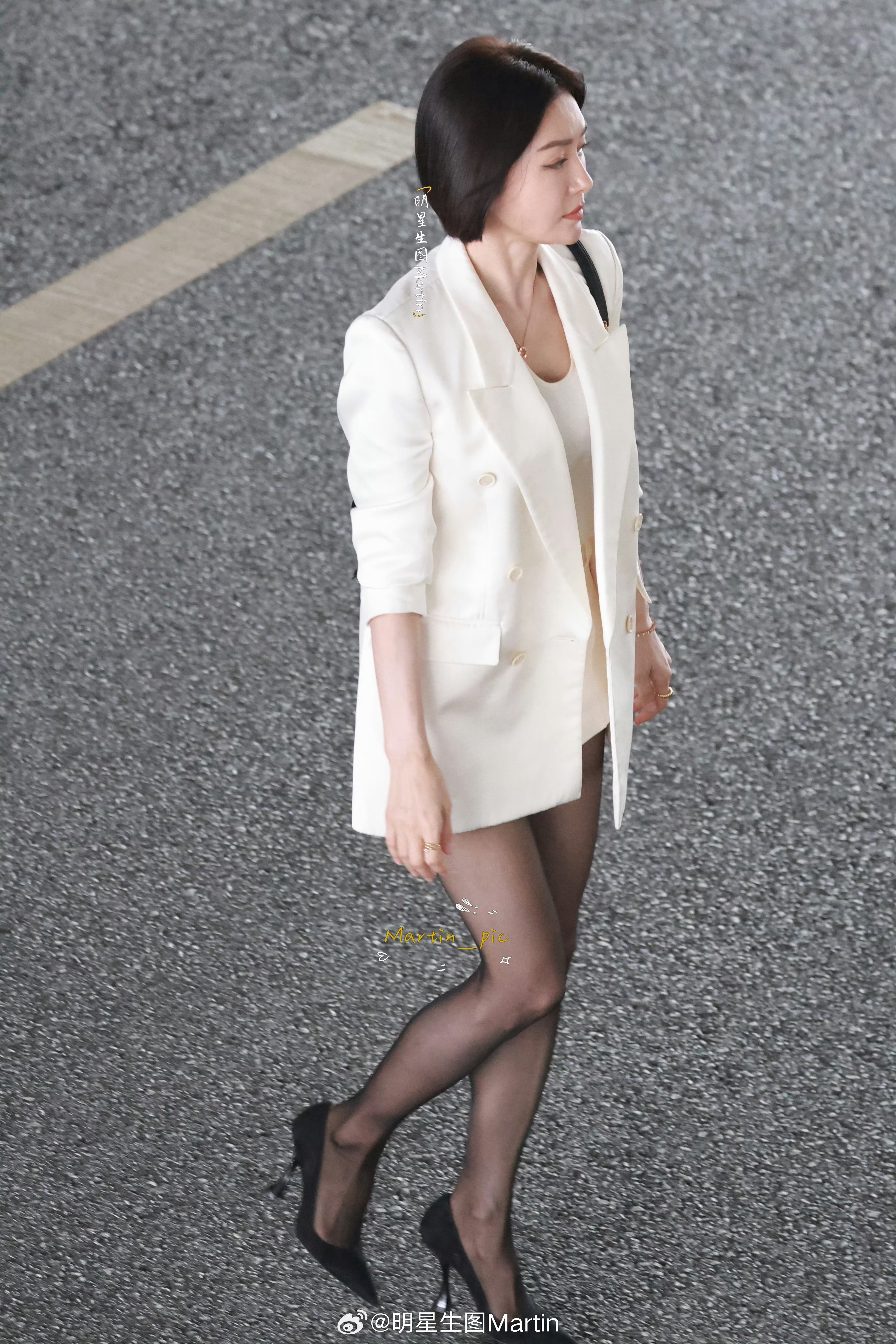 秦岚白色西装+黑丝高跟鞋真的太耀眼