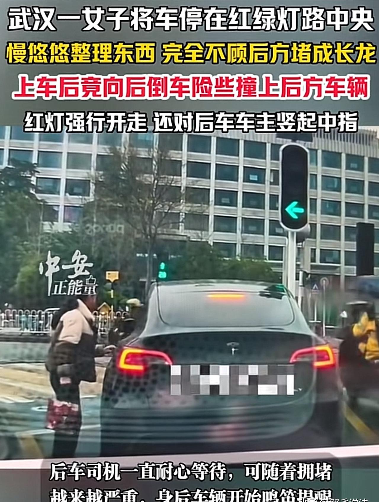 武汉一路口,一名女子驾驶特斯拉挡路停车整理后备箱,随后倒车险些剐蹭后车,接着违规驶离,还向后方车辆做出不文明手势。后车车主拍下视频上传网络,网友纷纷谴责其无视交规、举止失礼。 武汉,3月20日,早高峰。 这座城市每天早上都在重复同一场赛跑——写字楼的人赶着打卡,送孩子的父母盯着时钟,所有人都压在同一张路网上,绷着同一根弦。 然后,那辆特斯拉停了下来。 不是抛锚。不是事故。就是停了。停在路口正中间,绿灯亮着,后面的车已经开始动了,它偏偏停在那里,像一块突然凿进河道的石头。 后备箱盖弹开的声音,在一片喇叭声的前夜,显得格外清脆。 女司机下了车。慢慢的,没有任何慌张。她走到车尾,弯腰翻找,拎起一个袋子,又塞回去,再拿出来,再整理——整个动作的节奏,和武汉早高峰的频率差了整整一个维度。 那种反差,让后面堵死的司机们集体失语了几秒。 不是愤怒,是懵。真的懵。眼前这个画面实在太荒诞——一个人,把路口当成了自家后院,路口还亮着绿灯,后面还堵了几十辆车。 缓过神来,喇叭就响了。先是短促试探性的,后来变成长音怒吼。有司机探出头喊话,声音被城市噪音淹没,传到她那里估计只剩个气音。 终于,后备箱合上了。她拍拍手,慢悠悠走回驾驶座,关上车门。 后车司机松了一口气——就这一口气,还没来得及呼出来,特斯拉挂倒挡了。 油门踩下去,车子往后冲,后车司机的脚本能反应先踩刹车,方向盘猛打,心脏大概在那一秒跳到了喉咙口。两车差一点,就差那么一点。 接下来发生的事,比这更让人血压飙升。 她盯着红灯倒计时,数字跳到个位数,一脚油门直接冲过路口——闯红灯,教科书级别的,毫无犹豫。 冲过去之前,车窗摇下来了。 一只手伸了出来。中指,竖起来,朝着后面那一长串堵死的车,朝着所有老老实实等着的司机,慢悠悠地展示了几秒钟。 然后,扬长而去。 后车司机坐在原地,拍了半天方向盘。 那个中指,刺痛的不只是他一个人——它刺痛了所有在早高峰乖乖排队的人,所有没有加塞、没有按长喇叭、保持着最后一点公共默契的人。守规矩的人,被一根中指集体侮辱了。 视频发出去,是当天晚些时候的事。行车记录仪把整个过程录得清清楚楚:停车、开后备箱、整理、倒车、闯灯、中指。六个动作,一气呵成,毫无破绽。 评论区炸了锅。 "证据这么清楚,她还有什么好抵赖的?"有网友直接贴出法条:不按信号灯通行,一次扣6分,罚款200元。违章停车阻碍通行,再加一笔。竖中指公然侮辱他人,《治安管理处罚法》也够她喝一壶,轻则罚款,重则拘留。 法条是冰冷的,但账算得很清楚。 不过说实话,那200块钱和6分对她来说可能根本不叫事。真正让她付出代价的,是那段视频——那是她自己亲手留下的证据,完整、清晰、无从抵赖。行车记录仪这个东西,从来不会说谎,也不会忘记。 有人说,这年头路上最大的执法者,不是交警,是每一台行车记录仪。 这话,放在这件事上,再合适不过。 3月21日,这件事还在发酵。武汉交警有没有介入,目前没有公开消息。但那段视频,已经被截图、转发、搬运,在各个平台流传,评论区里每一条留言都是一个路人的判决书。 公众舆论有时候比罚单更难消化——毕竟罚单交了就完了,但视频会留下来,一直留着。 这可能才是她那根中指,最终反刺向自己的地方。 参考信息:湖北武汉一女子将车停在红绿灯路中央,全然不顾后面堵成长龙,上车后突然倒车险些撞上后车,红灯时直接开走,还对后车车主竖中指 2026-03-22 21:16·法治视讯
