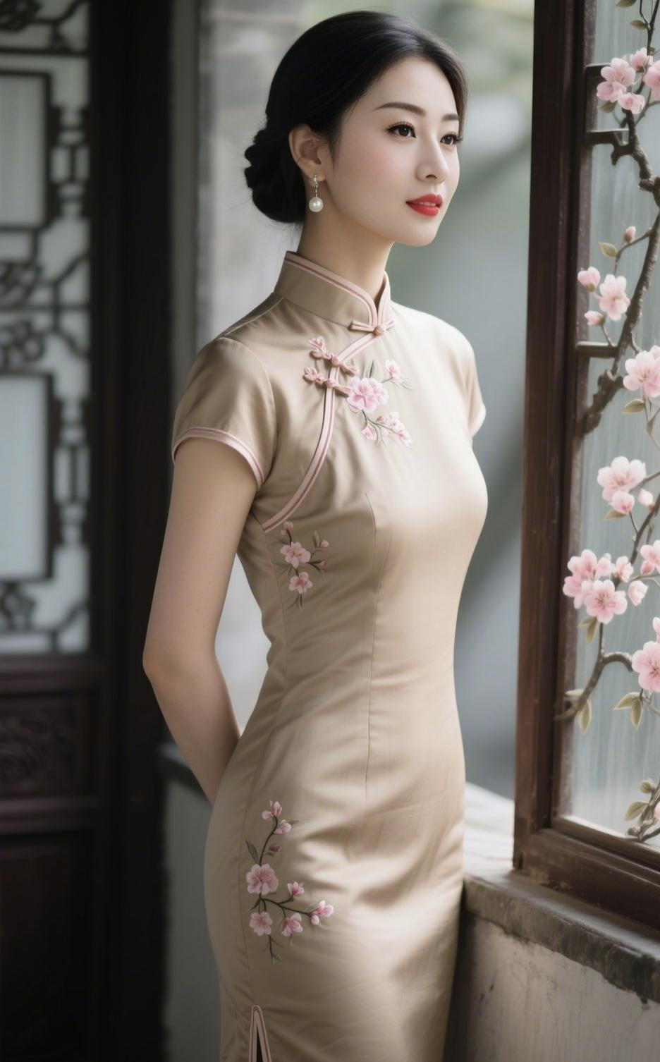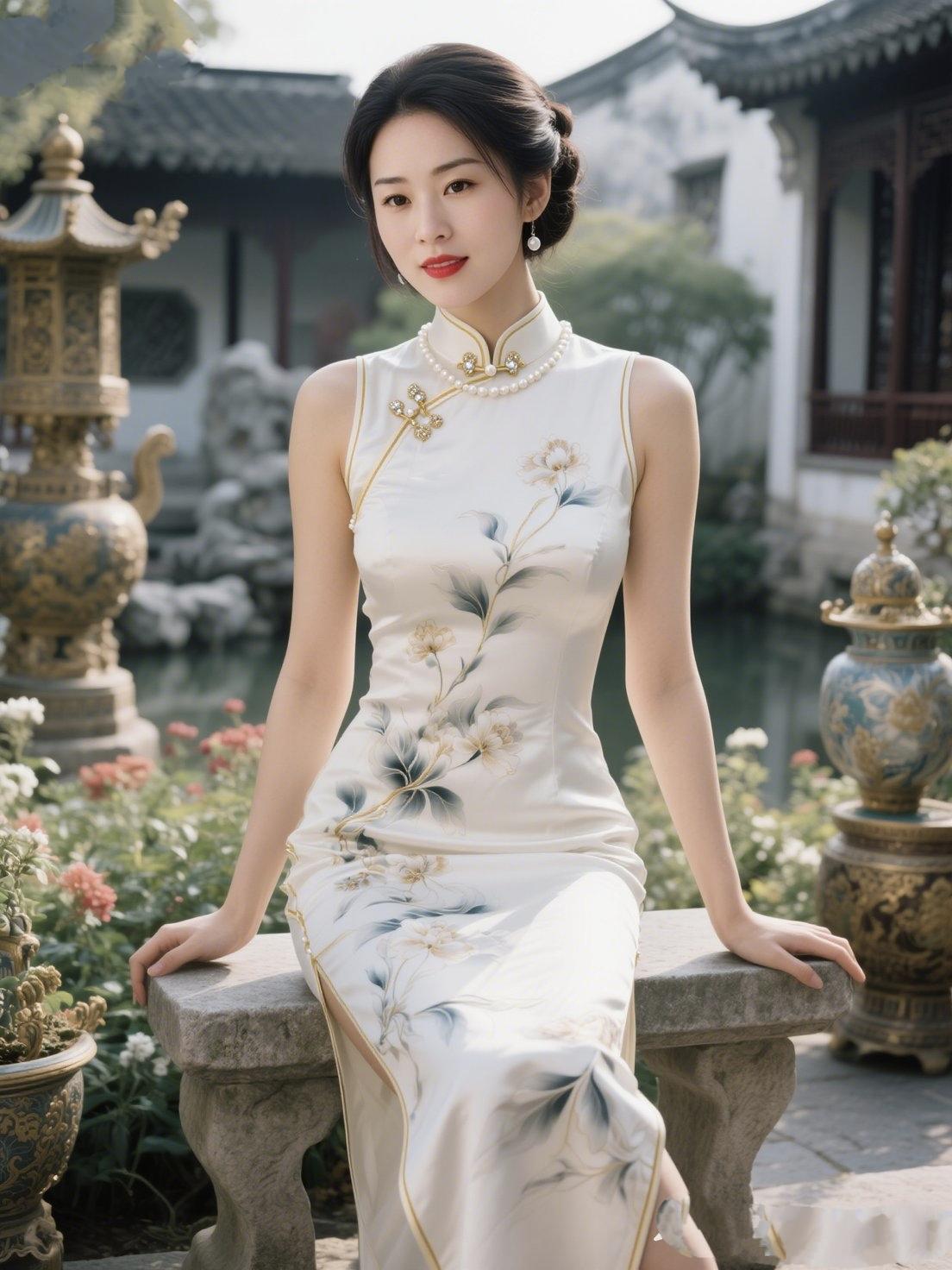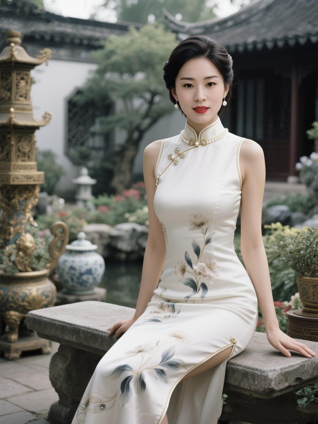 《旗袍不语,最是动人》 不必言说风情 一领盘扣 便锁住半卷江南烟雨 斜襟漫过岁月肌理 滚边轻绕 藏起欲说还休的心事 青石板上的莲步 不疾不徐 踏碎市井喧嚣 锦缎裹着温婉 素色衬着清寂 立领挺直风骨 开衩藏着灵动 不张扬,不谄媚 只静静立着 便胜却万千言语 风拂过衣袂 漾开细碎温柔 它不言悲欢 却把东方的雅致 缝进一针一线 于时光深处 兀自动人 江南风旗袍照 旗袍复古照 旗袍风景 旗袍溪畔写真 旗袍品茶照 旗袍自然风 旗袍微笑照