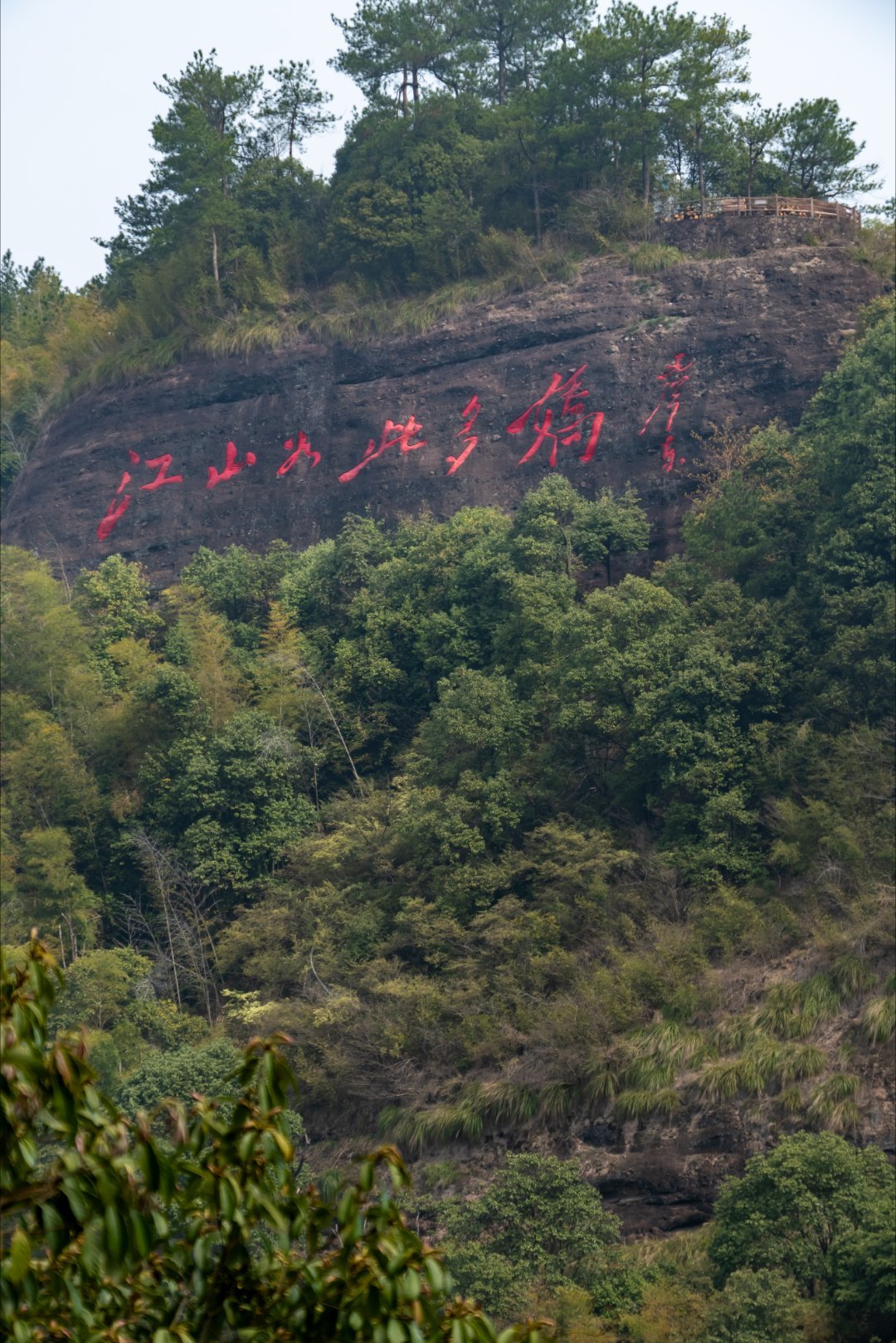 *在路上*江郎山...三爿石,拔地而起、形如刀砍斧劈的巨石(郎峰、亚峰、灵峰),宛如“川”字直插云霄。徐霞客曾三次到此游历...开明禅寺山墙上的“南无阿弥陀佛”是近代高僧弘一法师的遗墨...寺庙前对面岩壁上还有全国最大的 毛泽东手书“江山如此多娇”摩崖石刻...保存体力,景交~开明禅寺~会仙岩~霞客亭~十八曲...浙江衢州江山... 黄山·阳产土楼
