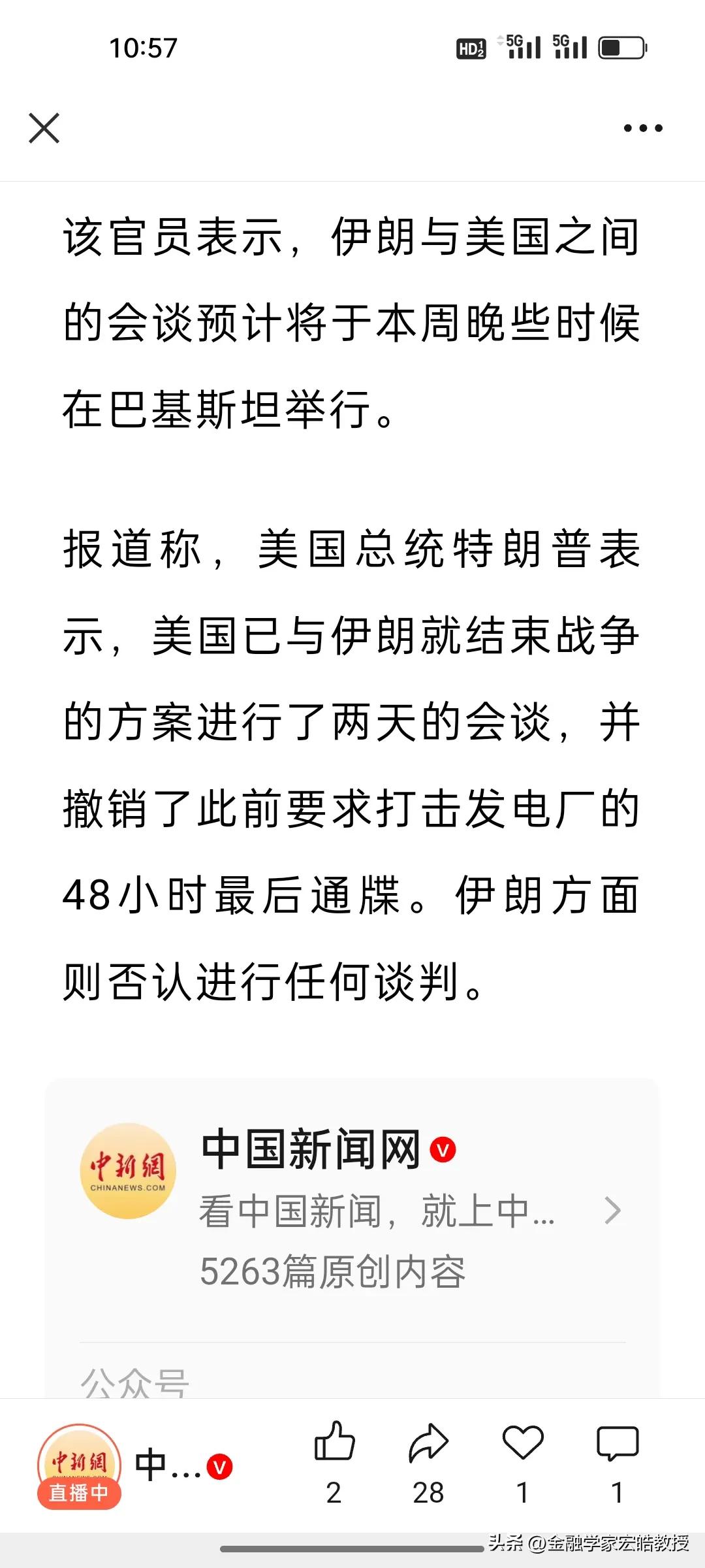 倒计时14天!以色列媒体曝美伊停火时间表敲定! 刚刚,以媒曝出重磅消息,美国将4月9日定为对伊战争结束日,停火倒计时仅剩两周。特朗普昨天到今天释放谈判信号均遭伊朗否认,当前这场博弈依旧扑朔迷离。 从金融逻辑看,特朗普周一急于停火意图明显,就是降油价和稳股市。 不过,这也让各界明白,特朗普确实不想打了,正如特朗普亲自说的他“非常有意向跟伊朗达成协议”。 现在以色列媒体干脆连战争结束时间表都放出来了。不管是不是美国一厢情愿,伊朗都应该看到美国是真的打不动了,船大难调头,打了25天,啥也没得到,白忙活一场。 特朗普昨天就跟中东各国讲了,停战让他们花2.5万亿,继续战争要花5万亿。即使这场战争啥也没捞着,也不能白干,总得薅点羊毛才能回去,阿拉伯盟友们估计还在蒙圈中。