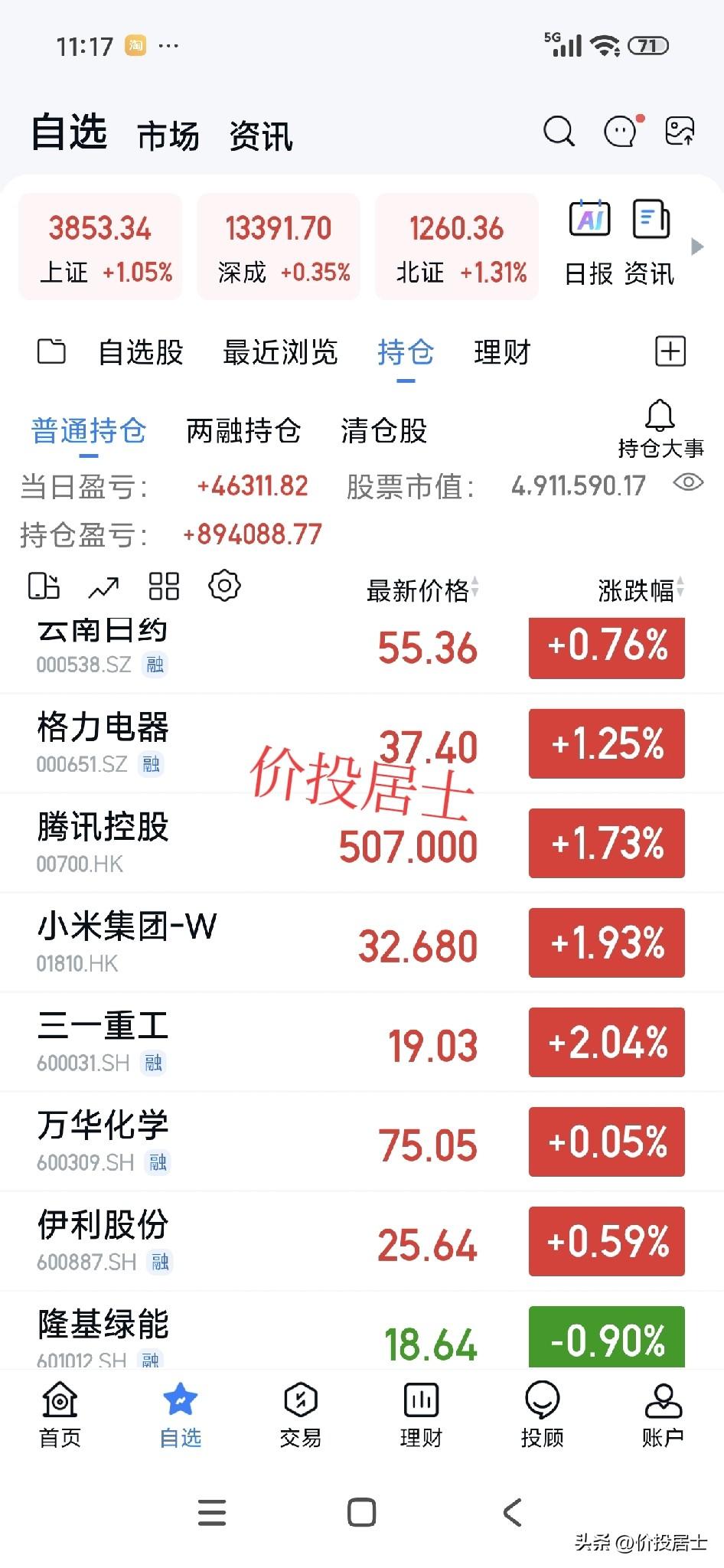 大家耐心等待大盘再创新高就行了!只是个人希望股市结构这次能逐步开始改变!因为很多中小盘的估值已经出现市梦率了,说到底,这类股票最终还是要由散户来接盘!属于机构的老套路了! 今天小米会披露财报,看看会不会像外资银行预测的那样,业绩遭遇很大的承压。个人觉得承压在所难免,但是外资银行也有些过于夸大了。涨价是大家都在涨,小米要是涨价实属常情,要是不涨价,也可以通过增加销量来抵消部分利润的损失! 有件事情,大家可以额外留意下 那就是看看高瓴资本减持格力的2%股份,到底是哪个机构承接了,才能定性这次减持事件最终是利空还是利好! 最后今天大盘来了个阳光普照,这是否代表新一轮的急跌结束,慢涨开始呢?