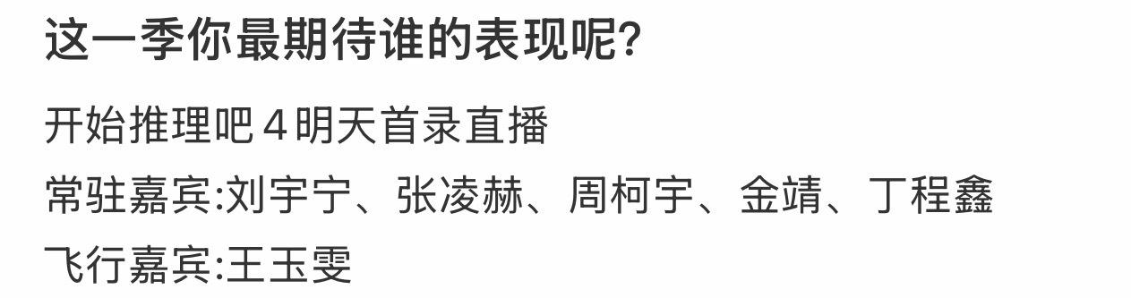 意难平!开推4阵容大换,热巴走了,女生只剩她 谁懂啊!《开始推理吧4》居然不是原班人马,迪丽热巴退出真的太可惜了。前几季她推理在线、造型又美又出圈,是节目里的一大亮点。好在丁程鑫加入,脑子灵还会整活,说不定能擦出新火花。只是女嘉宾只剩金靖独挑大梁,少了热巴的陪伴,总觉得少点味道,既遗憾又有点期待新一季。