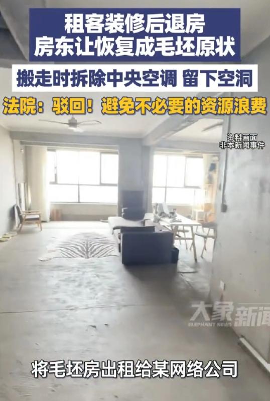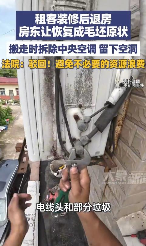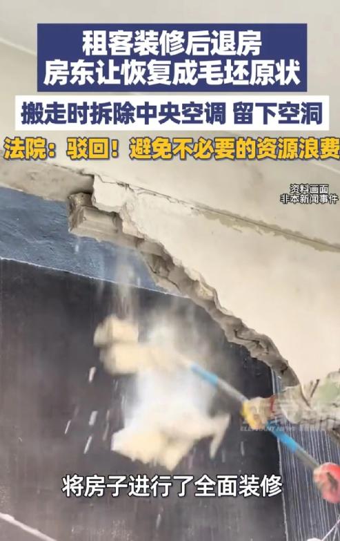 江苏南通,男子将毛坯房出租给某网络公司办业务,公司自掏腰包,把房子里里外外装修了一番,灰扑扑是毛坯房瞬间焕然一新。 租客自己花钱,把房东的毛坯房装成了精装修。结果退租时,两边差点打起来。 这事听着就挺绕。房东刘某有套毛坯房,2017年租给一家网络公司。公司为了办公,自己掏钱搞了装修,铺了地砖,刷了墙,还装上了中央空调。房东去看过,心里偷着乐,这等于白捡一个精装房。 这一租就是8年。到了2024年,公司因为业务变动,要提前四个月搬走。房东同意了,但提了个要求:别破坏装修。 可到了交接那天,房东一进门,脸就黑了。公司把当初自己装的中央空调给拆走了,墙上留下几个窟窿,电线也露在外面,地上还有没清理的垃圾。 这下房东火气一下就上来了。他当场要求租客:你们必须把房子恢复成当初租给你们时的毛坯房原样! 租客一听,觉得这简直是无理取闹。我们花了那么多钱给你装修,现在你想白得一个精装房,还想让我们出钱再砸成毛坯?哪有这种道理。 两边谈不拢,最后闹上了法庭。 法院经过调查,把账算清楚了。租客该补的租金物业费要补。关于装修,法律规定,经过房东同意的添置东西,租客可以拆走。中央空调这种能拆走的,公司有权处理。 但拆空调时留下的窟窿和乱线,属于损坏,租客得负责修好。可房东因为不满现状就拒绝收房,这也不对。 有网友分享了自己的经历,说租客退租时,连房东原来装的空气开关和灯都拆走了。也有网友认为,这房东是没经验,又想占便宜。其实聪明做法是提前问对方要拆什么,如果自己需要,可以适当花钱买下来,皆大欢喜。 说到底,这事怪当初合同没写清楚。装修的东西最后怎么处理,是拆是留,还是折价,都应该提前白纸黑字约定好。按约定来,就没这么多纠纷了。光想着占便宜,最后可能啥也落不着。
