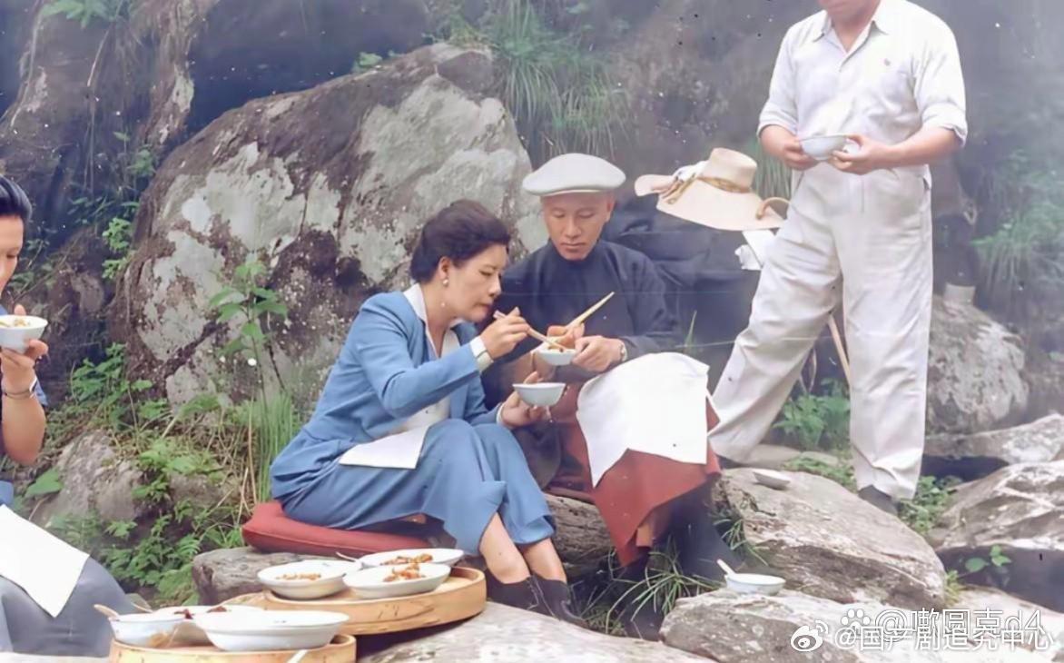 1946年,蒋介石与宋美龄庐山黄龙潭的野炊照片。两人看起来很恩爱。