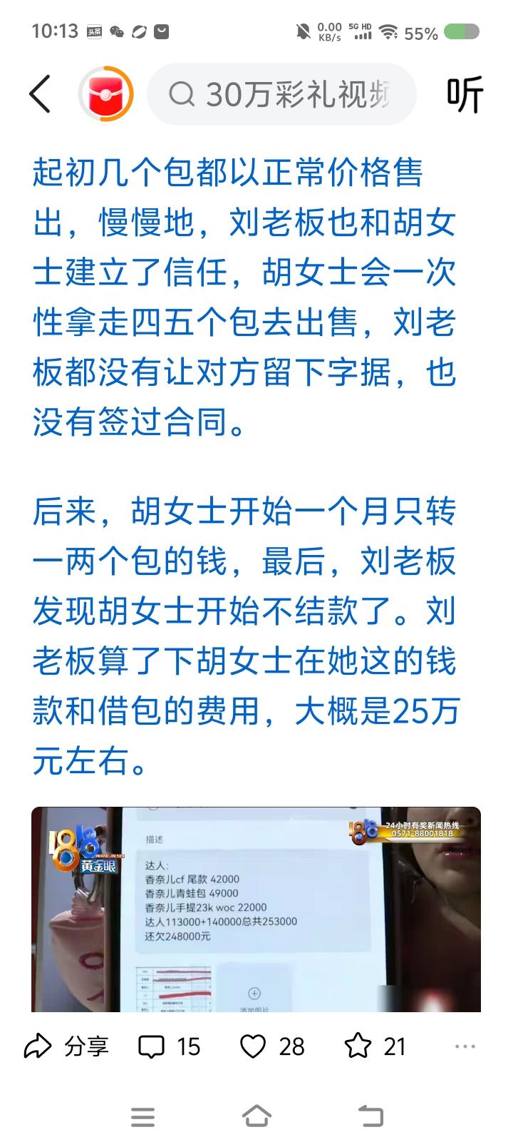 这是一个怎样的“传奇女性”—— 据报道,一女子自称家里有实力,去某商家买东西,后来又说带货,后来货款渐渐少了,不给了。打官司。 此女子还是一男子的“女朋友”,彩礼要了几十万了,还刷了男子的信用卡……这又是一笔账…… 此女子又和一商家有经济纠纷…… 点评: 如果属实,这是一个人能完成的? 这是一个“奇女子”! 她没有吃过亏?会不会玩脱了有危险?不是所有的上当者都是老实人。万一…… 建议警方好好调查。 另外,那些受害者缺乏警惕心。