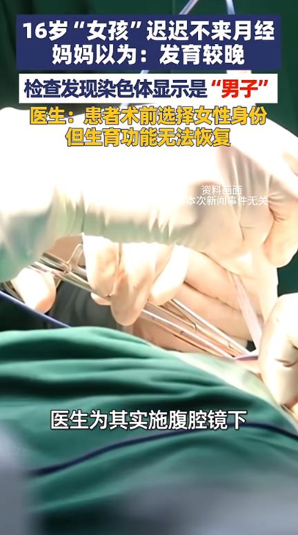 “太意外了!”浙江台州,一女孩因为迟迟不来月经,就在妈妈的陪同下去看医生,没想到竟然是46XY单纯性腺发育不全,也就是说,看似女孩的她,实际拥有男性染色体,最后女孩选择了女孩身份,但无法恢复生育功能!网友:这谁能想到! 我们总习惯用肉眼看到的外表去定义一个人的性别。 但这个孩子,原本一直以为自己是个女孩,却不曾想自己竟是男孩!这是怎么回事? 对于青春期的女孩来说,绝大多数女生会在12至16岁之间迎来第一次月经。 哪怕因为体质、遗传、营养状况不同,个别女生会推迟一两年,也属于正常的个体差异,家长和孩子大多不会过度焦虑。 可这位女孩过了16岁之后,依旧没有丝毫来月经的迹象。 她的妈妈开始没往别的方向想,只觉得是孩子营养不良,或是学习压力太大打乱了内分泌。 于是妈妈变着花样给孩子补充营养,炖滋补汤、买调理气血的食材。 可所有办法都试过一遍,孩子身体依旧没有任何变化,月经还是迟迟没有踪影。 妈妈这才彻底意识到,或许这根本不是简单的发育迟缓。 于是她当即放下手头的事,带着孩子赶往当地医院,打算做一次全面彻底的检查,找到问题的根源。 刚到医院时,母女俩按照常规思路挂了妇科门诊。 医生仔细询问了孩子从出生后的身体发育情况,到青春期的各项变化,再到这些年的调理过程,随后便安排了基础的检查。 拿到检查报告后,接诊医生没有贸然给出诊断,毕竟这种发育异常的情况,诱因非常复杂,既有可能是激素分泌异常,也有可能是先天遗传层面的问题。 想要精准确诊,必须做更深入的专项检查。 其中染色体核型分析是重中之重,因为人体的性别遗传密码,全都藏在染色体的配对形态里,这是判断性发育异常的核心依据。 母女俩听从医生的建议,当天就完成了各项采样,接下来便是漫长的等待。 一段时间后,当母亲拿到孩子检查报告的那一刻,整个人都陷入了震惊和茫然——46XY。 要知道,正常女性的染色体核型是46XX,而46XY是标准的男性染色体核型。 结合性激素六项的检测数据——体内雌激素水平极度偏低,促性腺激素水平却远超正常范围,再配合盆腔超声的结果,医生最终给出了明确诊断:46XY单纯性腺发育不全。 胚胎发育过程中,没有雄激素的刺激,外生殖器就会自然朝着女性方向分化发育。 所以孩子出生后,外生殖器外观完全是正常女性的样子,家人自然会按照女孩的身份抚养。 从小到大,她的生活环境、社交身份、自我性别认知,也全都贴合女性角色,从外表根本看不出任何异常。 只有进入青春期后,因为没有功能性性腺分泌雌激素,无法触发第二性征发育和月经来潮,才会出现明显的异常表现。 突然面对这样的诊断结果,母女俩一时之间确实难以接受,毕竟这打破了他们多年的性别认知。 而孩子在经过深思熟虑和内心挣扎后,彻底平复了情绪的她,做出了坚定的选择:虽然无法生育,但是想要继续保留自己的女孩身份。 这件事被分享到网络上之后,迅速引发了网友的广泛关注和讨论。 很多网友都表示:“一直以为眼睛看到的性别是绝对的,没想到还有这样特殊的发育情况。” 也有很多网友表示:“通过这件事才意识到,青春期身体发育的异常信号绝不能忽视,及时就医、做全面检查,才是对孩子负责。” 还有不少网友心疼女孩的遭遇,敬佩她面对这样的情况依旧能够保持坚定和坦然。 (信息来源:《16岁“女孩”迟迟不来月经,妈妈以为:发育较晚,检查发现染色体显示是“男子”,医生:患者术前选择女性身份,但生育功能无法恢复》)