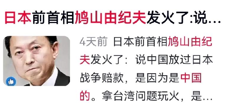 🛑鸠山由纪夫掷地有声:中国的大度,绝不是日本挑衅的底气! 中日建交时,中国主动放弃巨额战争赔款,这不是软弱,而是大国以恩怨换和平的远见卓识!这笔赔款,本足以让日本经济倒退数十年,却成就了其后的高速腾飞。这份沉甸甸的善意,是写进历史契约的底线。 然而,右翼政客高市早苗却将其视为可欺之物,无视《中日联合声明》,公然叫嚣台海有事即参战。更荒唐的是,她忘了美国只是把盟友当棋子。 前首相鸠山由纪夫怒斥得好:中国的宽容是胸怀,不是软肋;善意是格局,不是退让。日本若执迷不悟,拿国运赌政治资本,触碰中国红线,终将玩火自焚,吞下反噬的苦果!历史契约,不是你们可以随意践踏的废纸! 对此,你怎么看? 中日关系 台海红线 大国博弈 鸠山由纪夫 历史真相