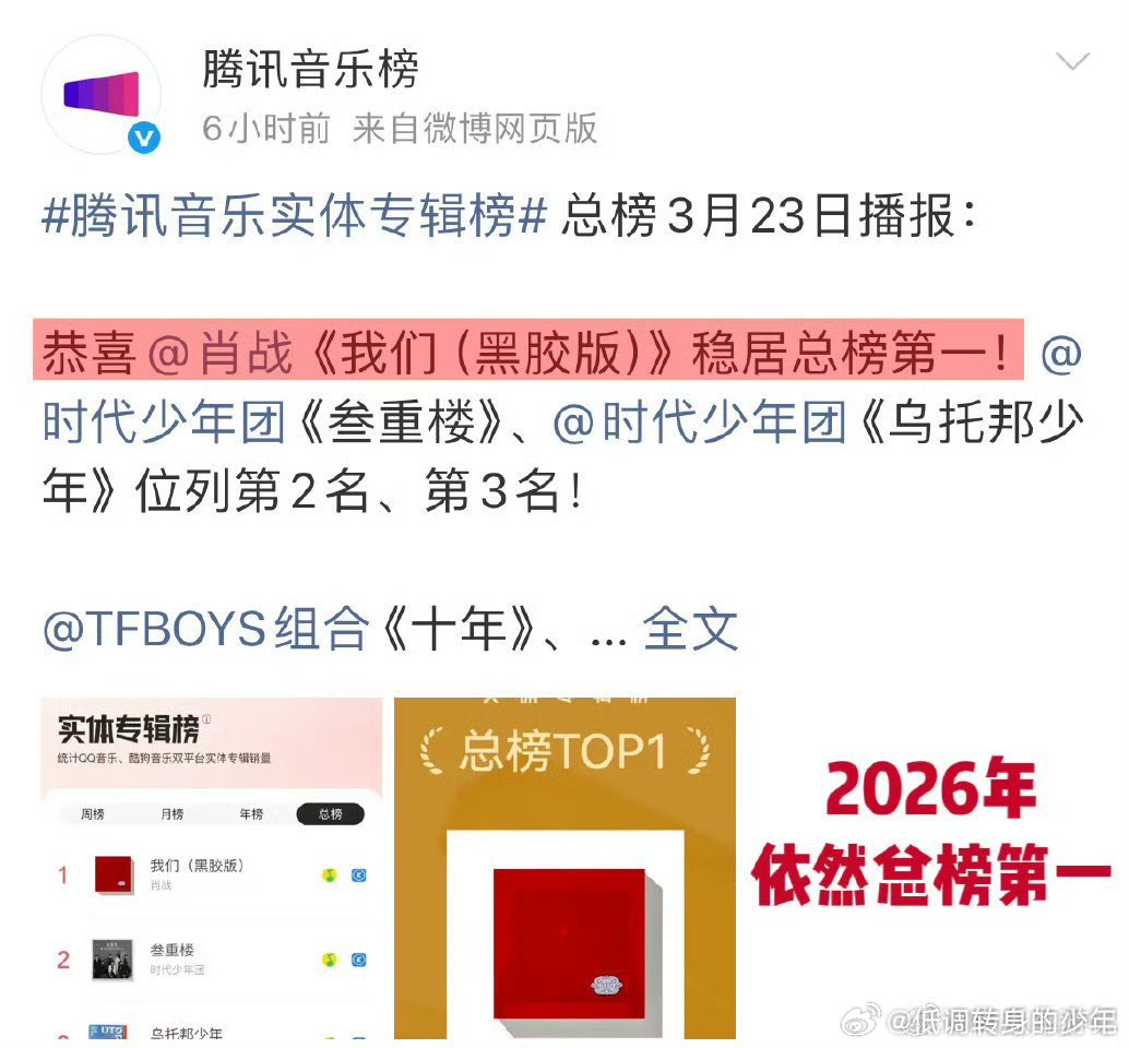 肖战专辑我们 腾讯音乐2026年3月23日播报:肖战首张实体黑胶专辑《我们》,继续稳居双平台销量总榜第一🎉24年12月11日发行的专辑《我们》,销售周期仅为一年,且停售后不再加印。到今天依旧稳居第一,这个纪录真的很难打破了 !只有顶流的下一张专辑能打破了 !肖战专辑我们