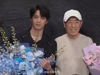 刘耀文张艺谋惊蛰无声杀青合照刘耀文惊蛰无声杀青捧花照