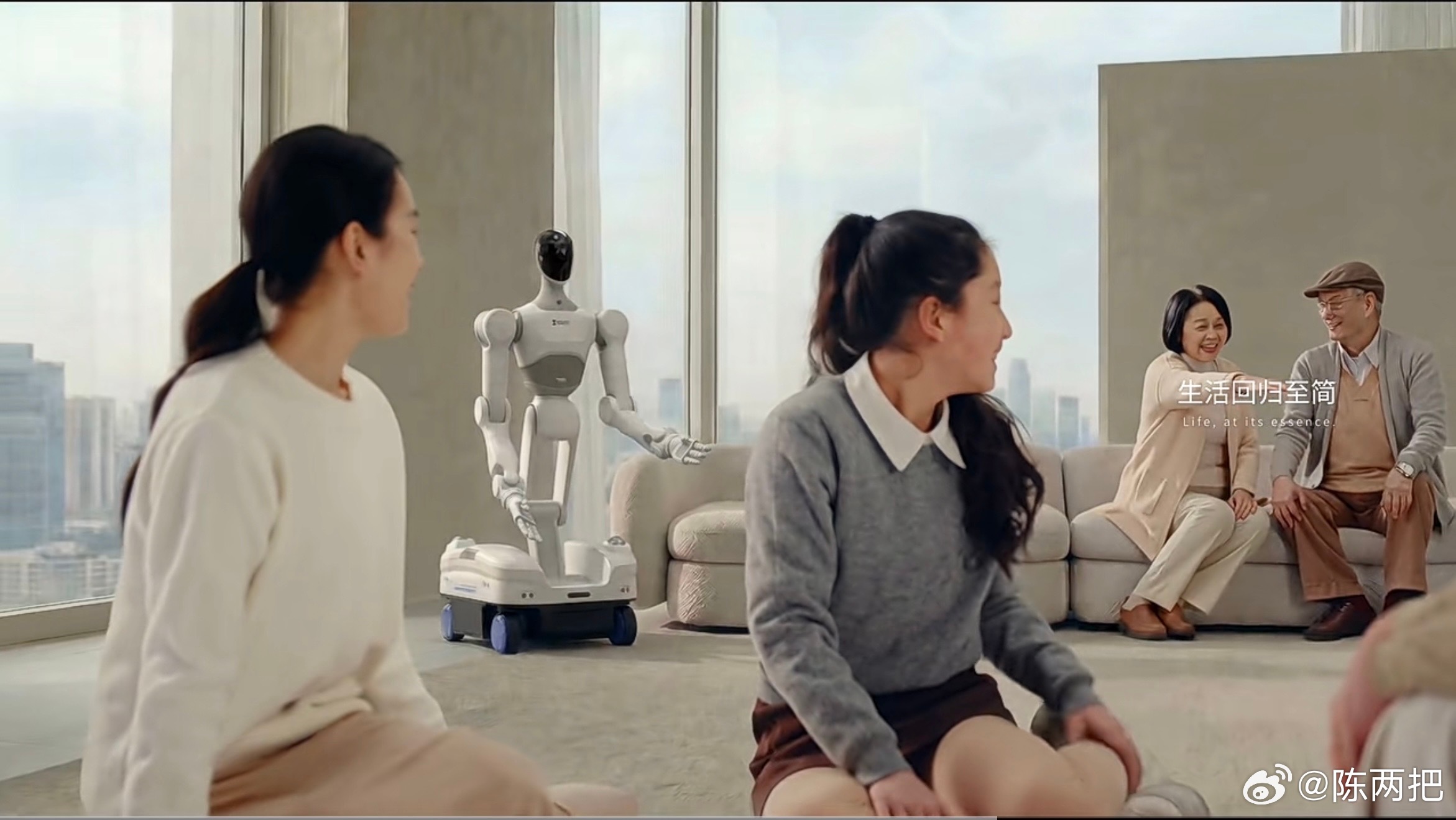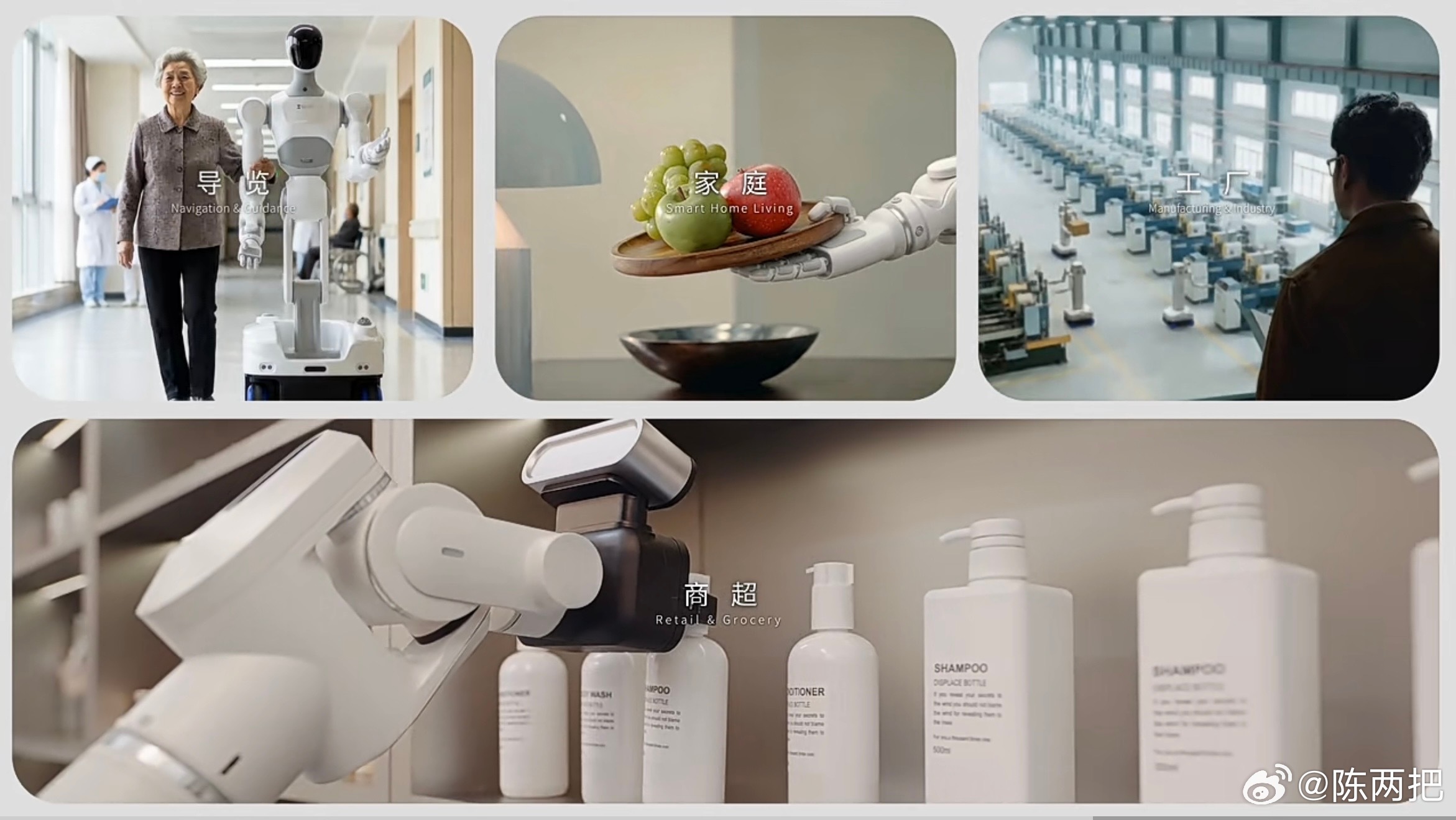 从最新的宣传片里获取的的一些信息:1. 产品形态:轮式底盘,类人型服务机器人,可能是模块化可拆卸的高精度机械臂2. 硬件配置:机身配备多目摄像头模组,头部搭载传感器看不清3. 应用场景:导览服务、工业制造、零售商超、家庭陪伴、智能家居等4. 产品亮点:握笔绘画、端送水果、整理货架等精细化操作能力