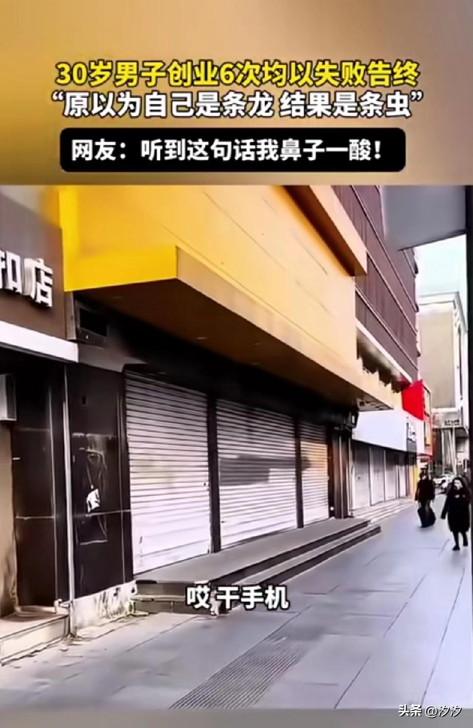 30岁男子创业6次均失败, 情绪有些崩溃了, 说自己干手机店手机店倒闭了, 后来干水果捞水果捞店也倒闭了, 自己又干了饭店,结果饭店又倒闭了, 原来觉得自己是一条龙, 现在才知道自己是一条虫, 干啥啥都倒闭, 最后也不知道自己能干什么, 不仅赔光了自己的积蓄, 还欠了一屁股的债, 现在这个社会不缺老板, 就缺那些埋头创业的年轻人, 实体行业真的太难干了, 不仅房租成本那么高, 关键人力资源成本也很高, 很多店铺都是在苦苦支撑, 以前当老板都是挣大钱, 现在当老板都是给房东打工, 只不过是没有组长管自己而已, 生活真的有点儿困难了, 但凡创点业的人都负债, 再这样下去真的不知道怎么办了, 大家觉得是不是不应该创业? 创业个人感悟 离职后选择创业 实体店创业心得 创业开店的经历 中年男创业记 创业小结 餐饮人创业感悟