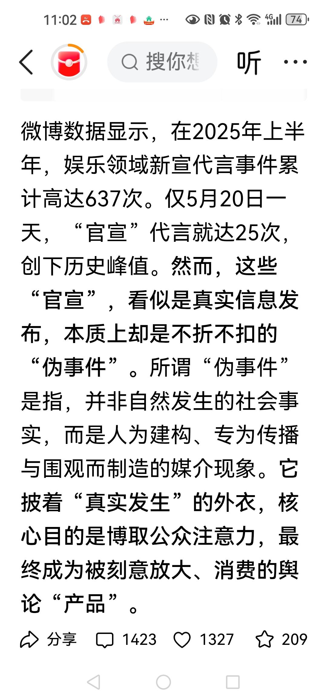 人民网评姚晨"官宣"离婚:离婚纯属私事,没有义务公开,"所谓官宣"成收割流量红利"密码",浪费公共资源 官宣官宣,什么是官宣,望文生义自然就官方的宣布,只有政府部门才是官方才能官宣,你明星们结婚离婚的私人私事算什么官方官事,一点严萧性都没有,甚至于什么恋爱了失恋了怀孕了生子了都来一轮官宣,这算什么事?看到她们官宣来官宣去的,占用官宣这一词就觉得特别的别扭尴尬,官宣一词被滥用十年八年了,被娱乐了十年八年了,还好现在人民网来制止了,止在姚晨这次官宣身上。 这是一份迟到的对官宣一词的批评,这之后大概没人敢随便去官宣什么了吧?